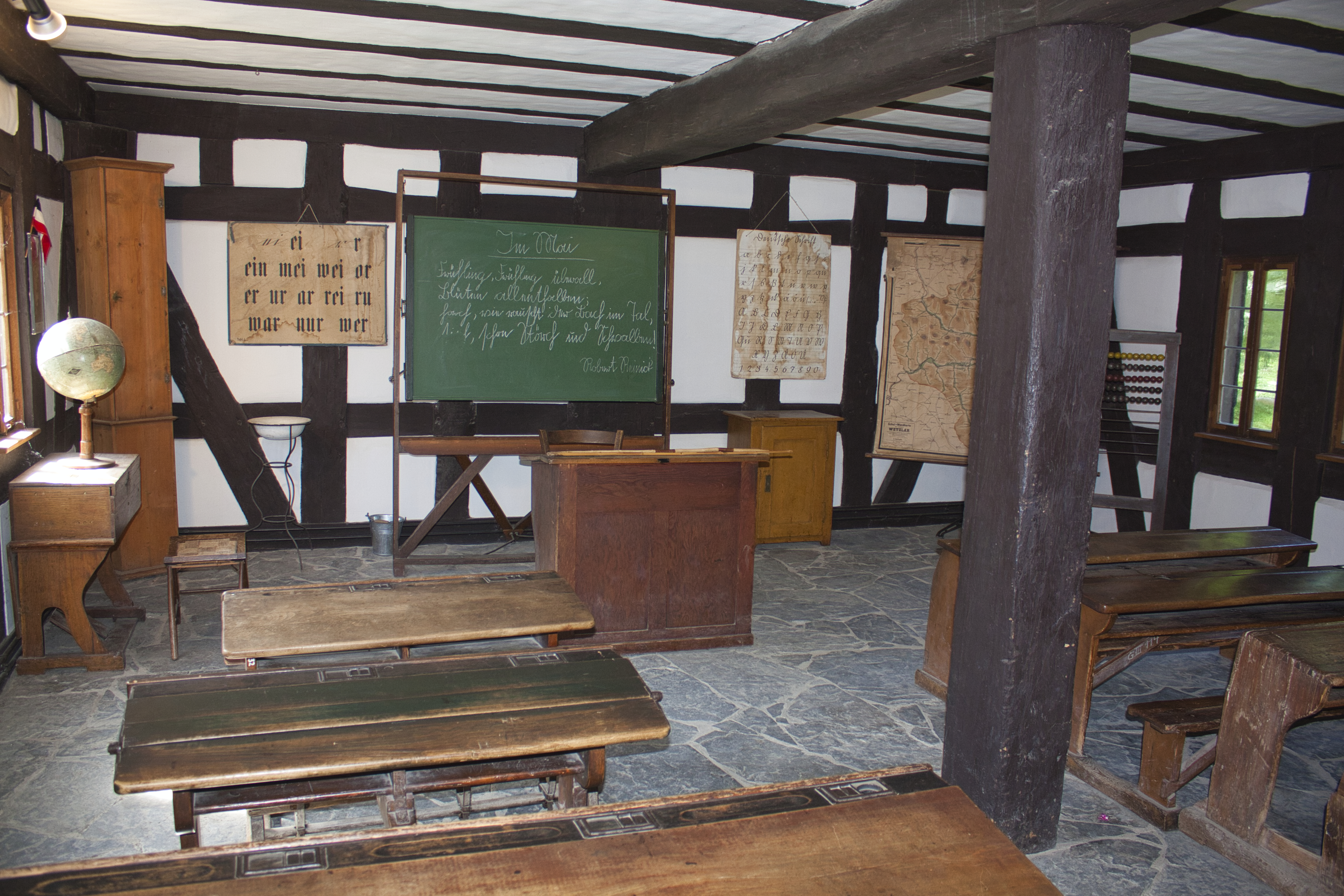 Historisches Klassenzimmer im Haus aus Frickhofen im Freilichtmuseum Hessenpark in Neu-Anspach.