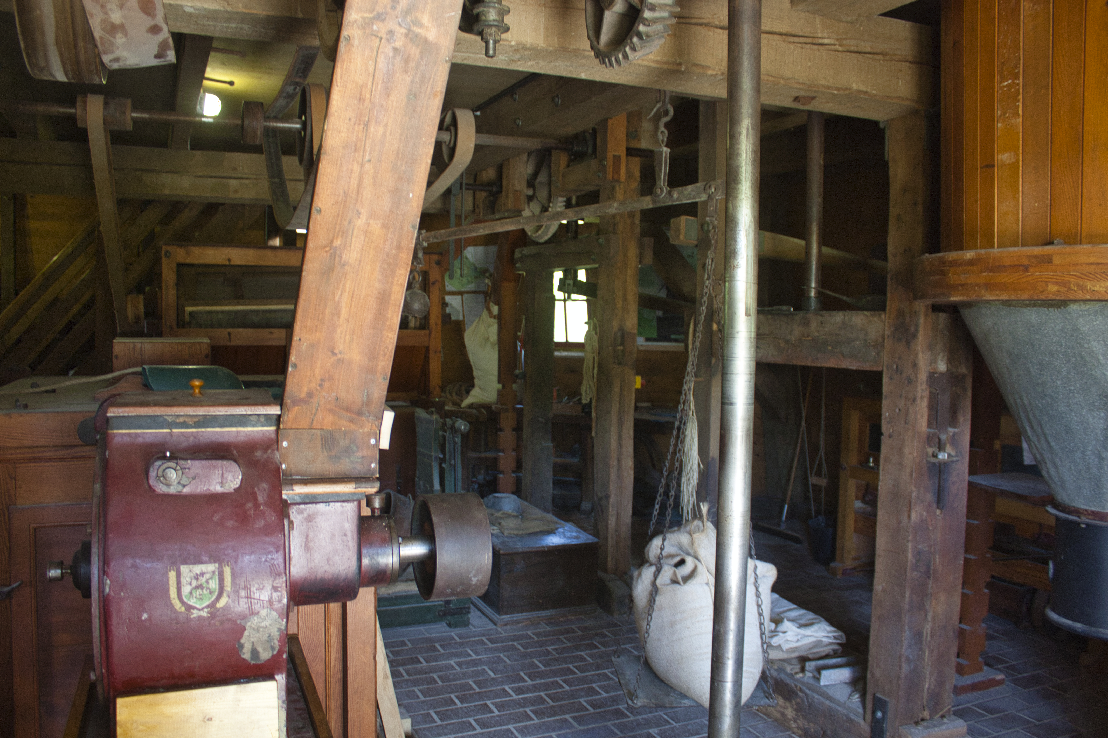 Innenansicht der Windmühle aus Borsfleth im Freilichtmuseum Hessenpark in Neu-Anspach.