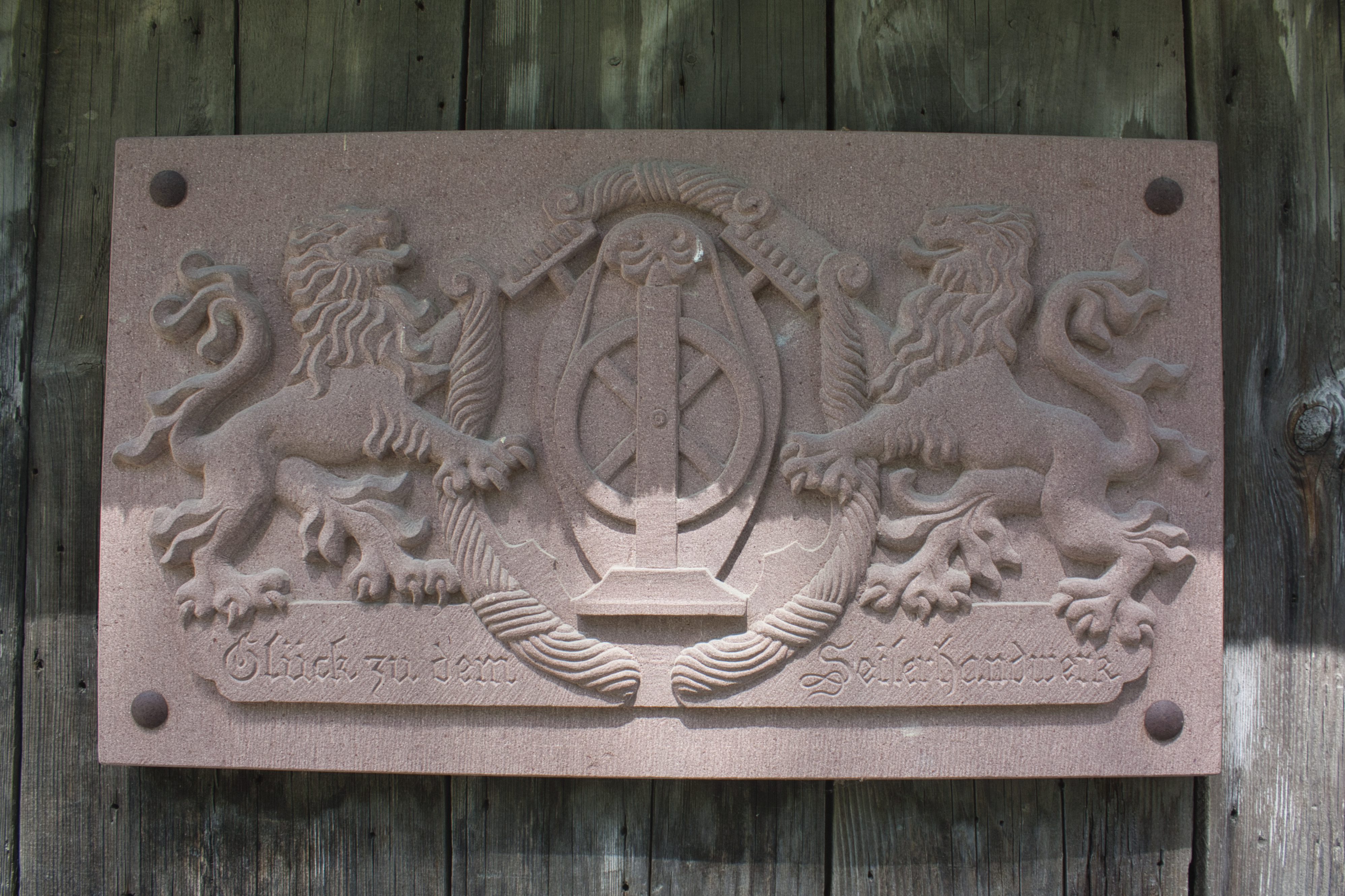 Schild "Glück zu dem Seilerhandwerk" am Nachbau einer Seilerei aus Gießen im Freilichtmuseum Hessenpark in Neu-Anspach.