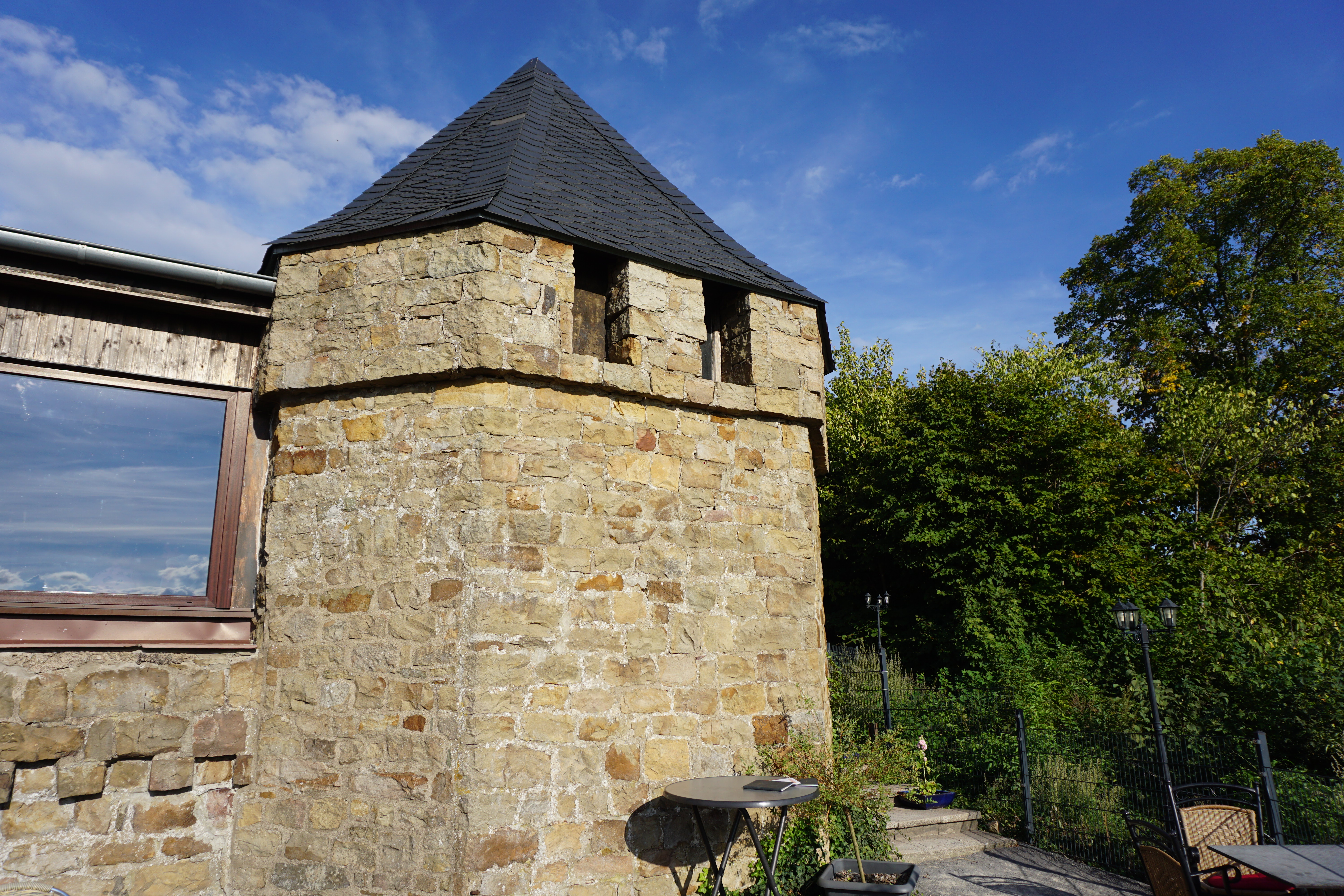 Hier eine Rekonstruktion eines Turmes an der Burg Schwalenberg.