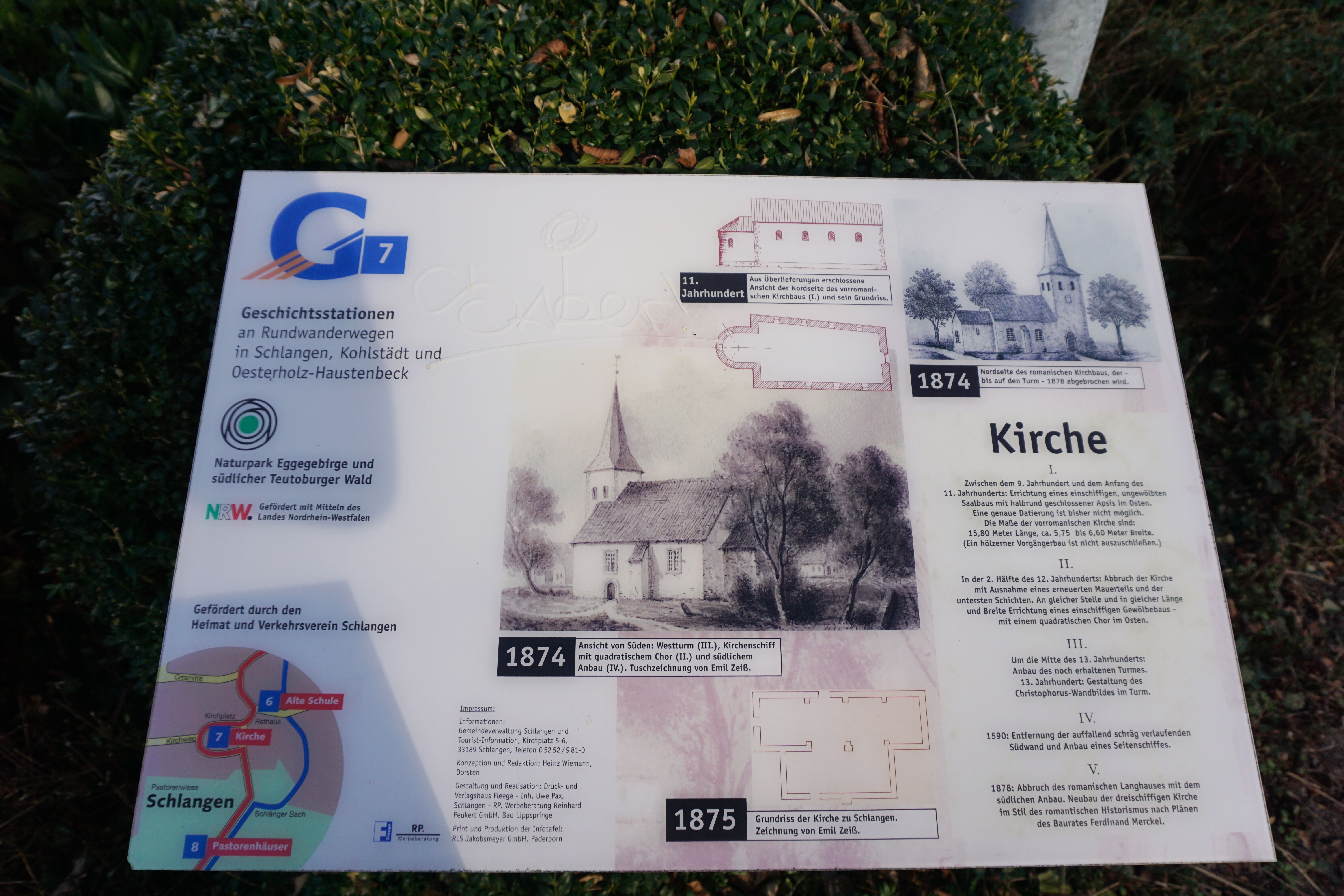 Infotafel über die evangelische Kirche Schlangen.