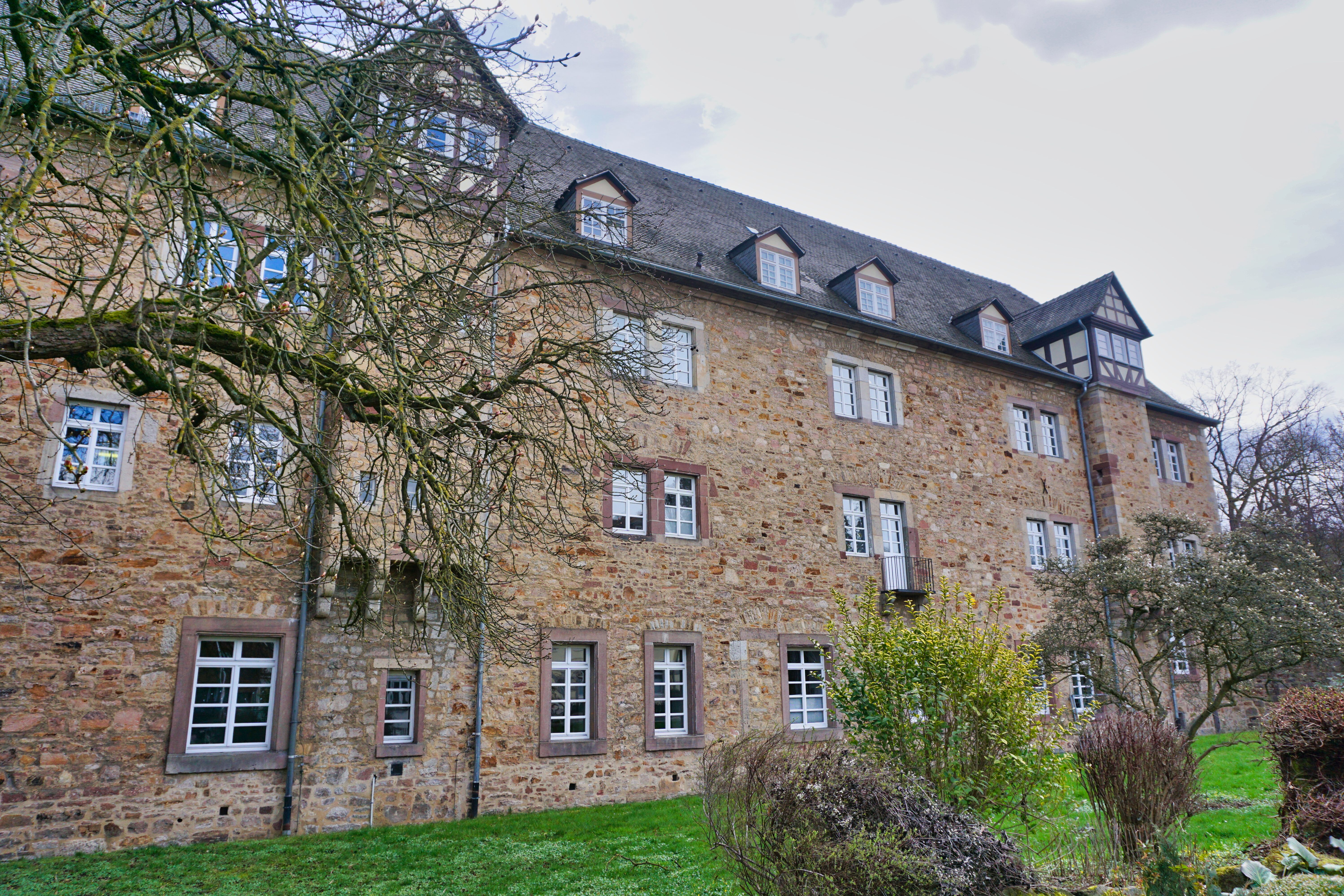 Hier die nordwestlich ausgerichtete Fassade des Schlosses mit zwei größeren Erkern