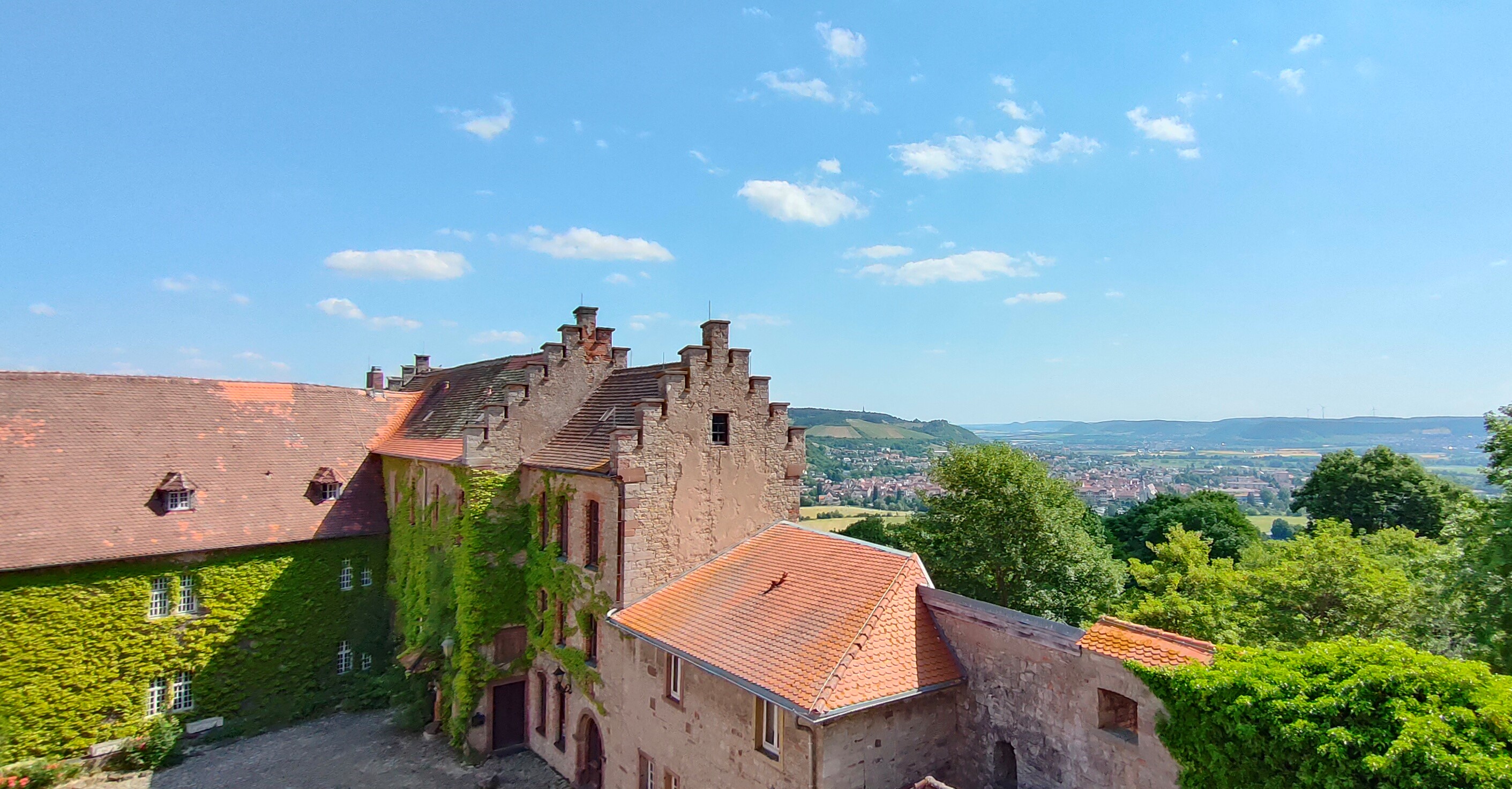 Innenhof und Ausblick Schloss Saaleck, Hammelburg.