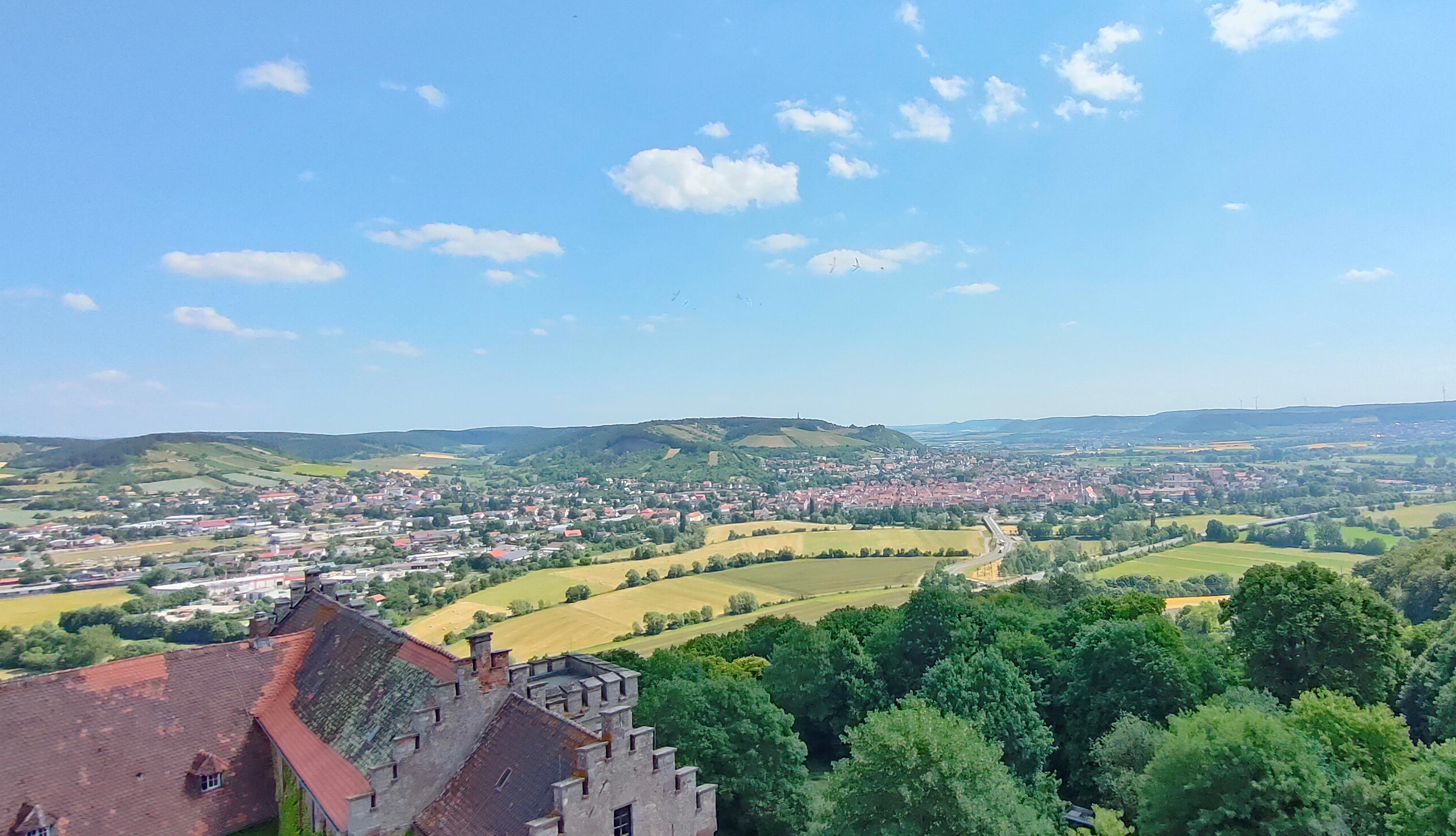 Ausblick vom Turm des Schlosses Saaleck, Hammelburg.