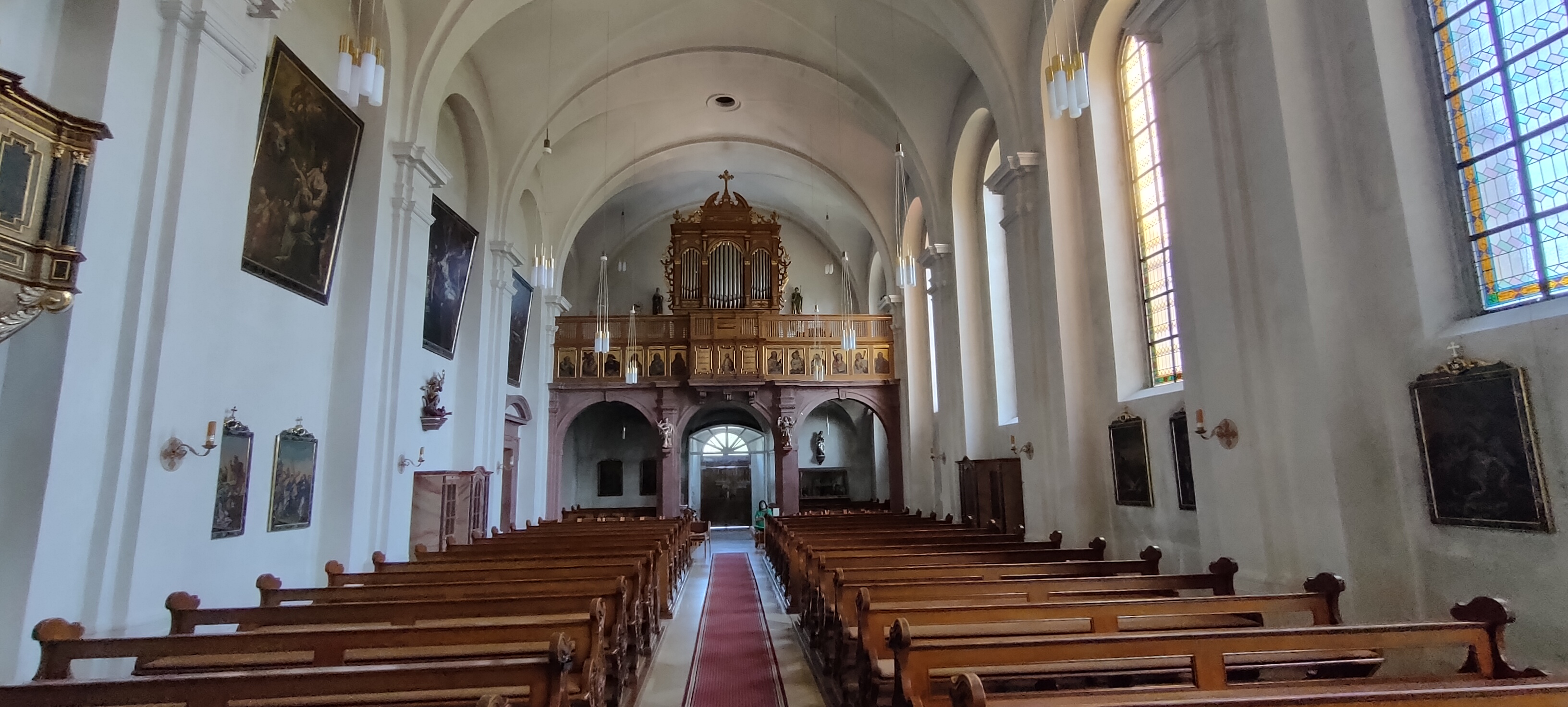 Innenraum und Orgel der Klosterkirche, Hammelburg.