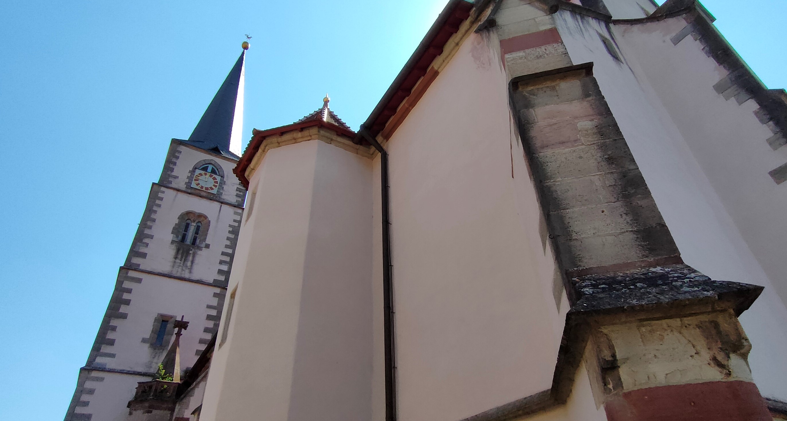 Turm und Seitenansicht der Kirche St. Johannes der Täufer, Hammelburg.