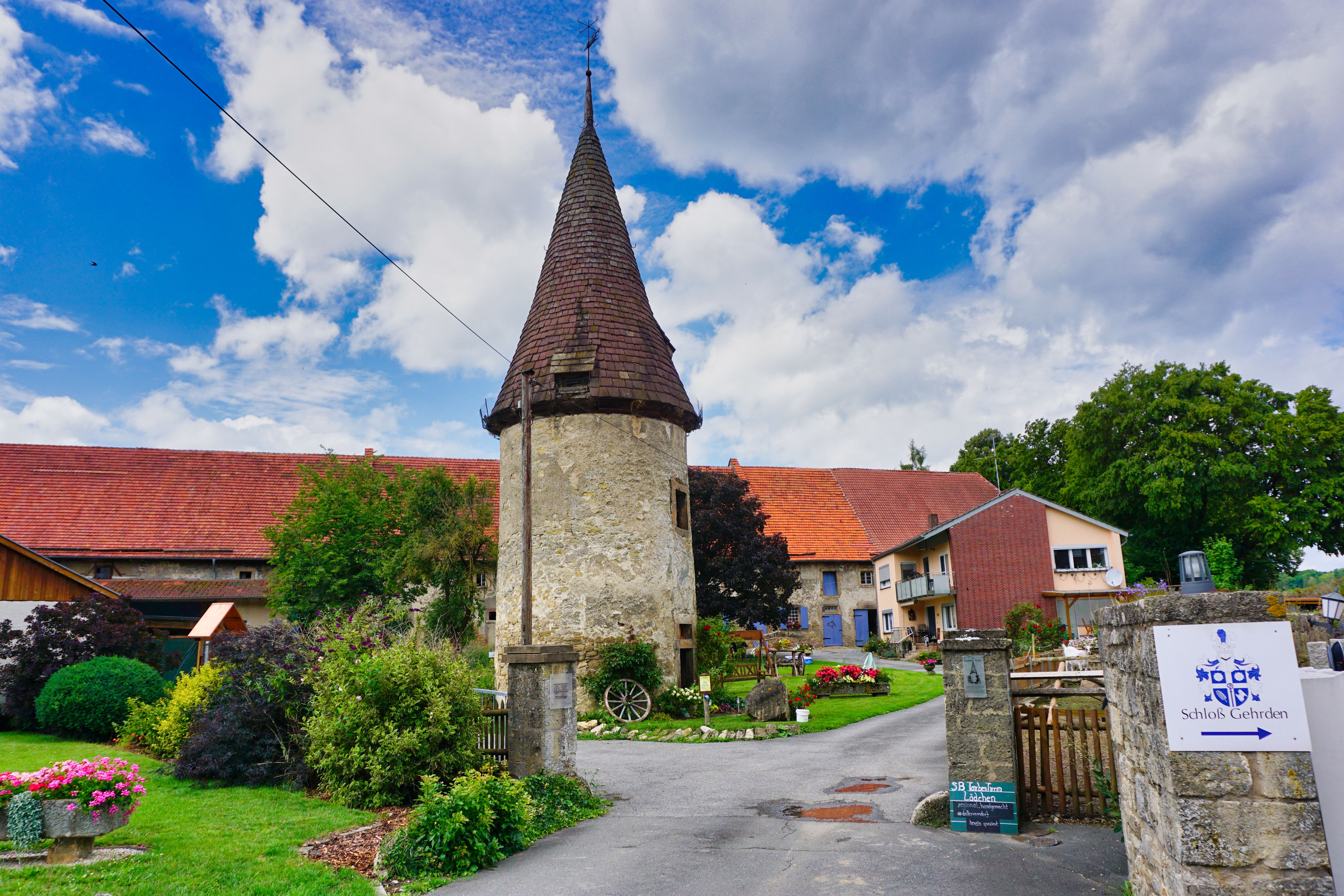 Taubenturm und Einfahrt Schloss Gehrden, Brakel.