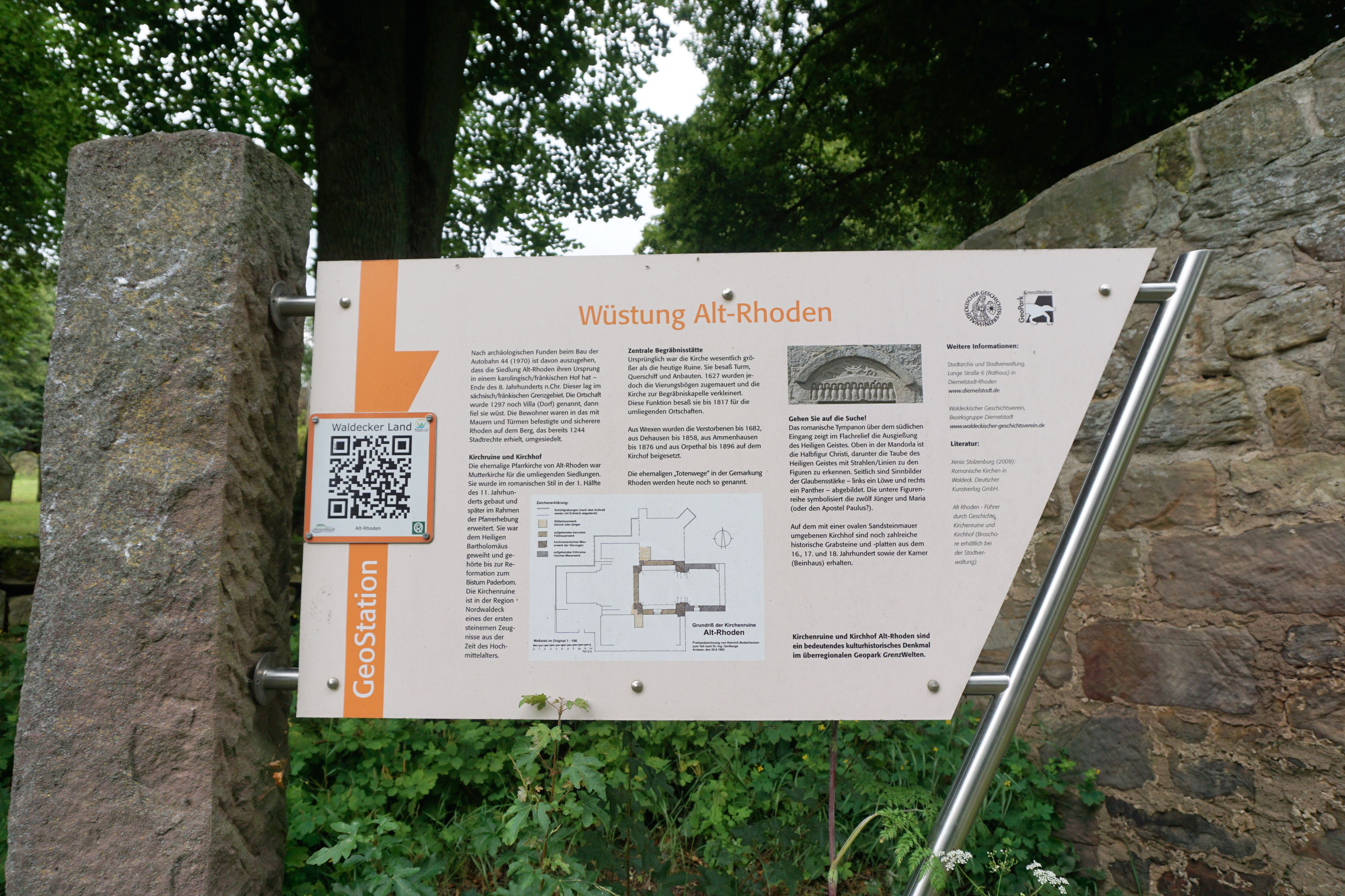 Info-Tafel vor der Wüstung Alt-Rhoden, Diemelstadt.