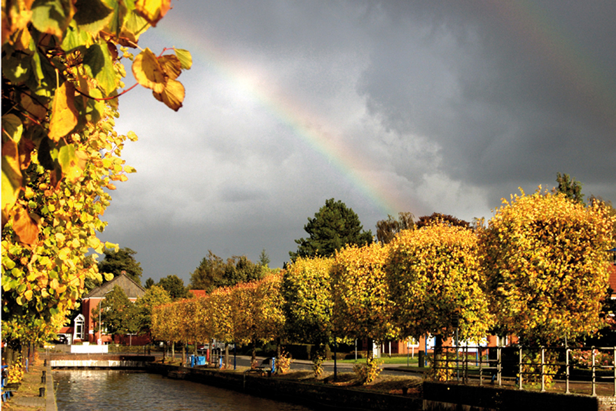 Regenbogen über dem Auricher Hafen.