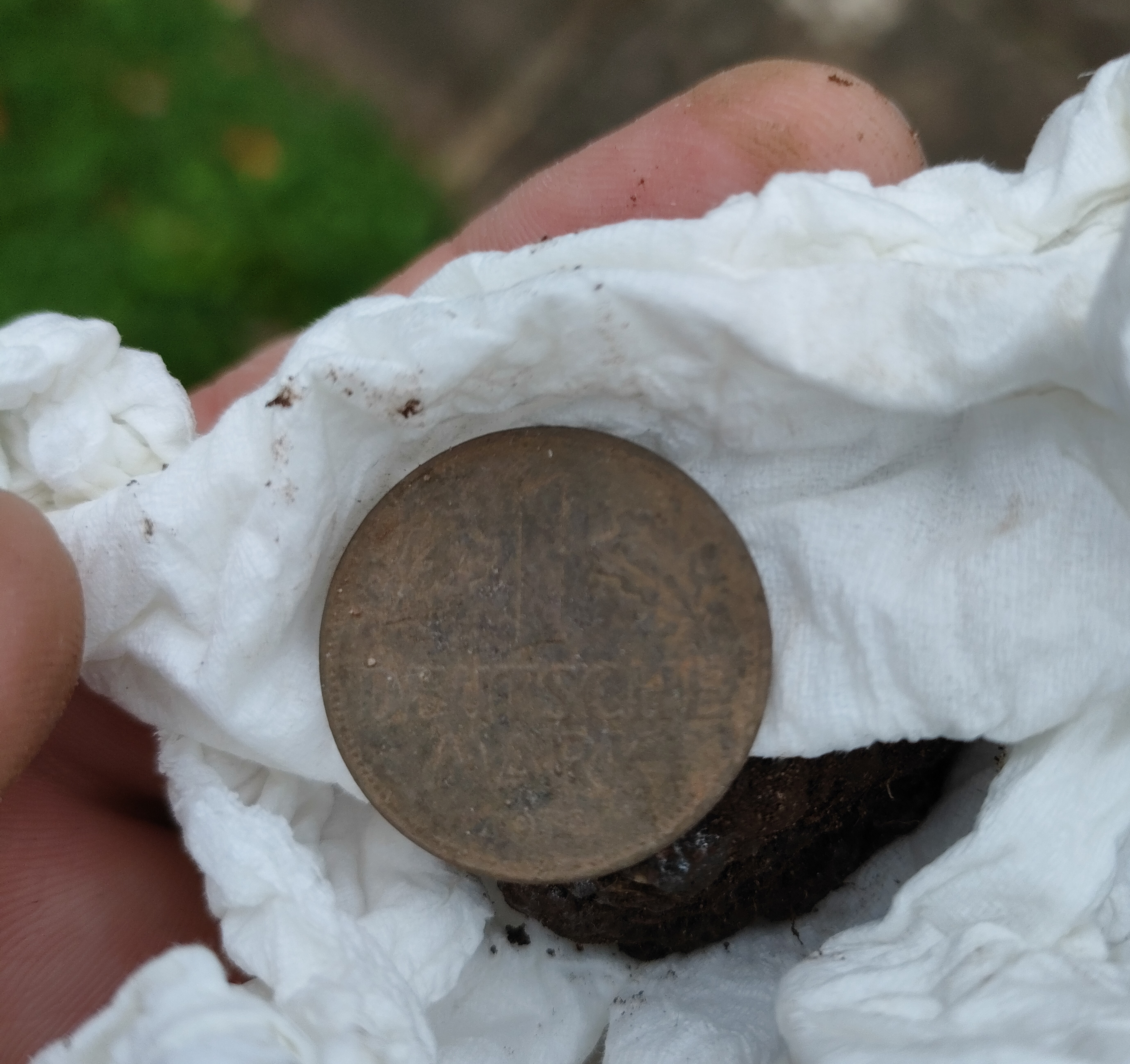 Eine Deutsche Mark lag auf einem Maulwurfshügel am Turm der Burg Wallenstein.