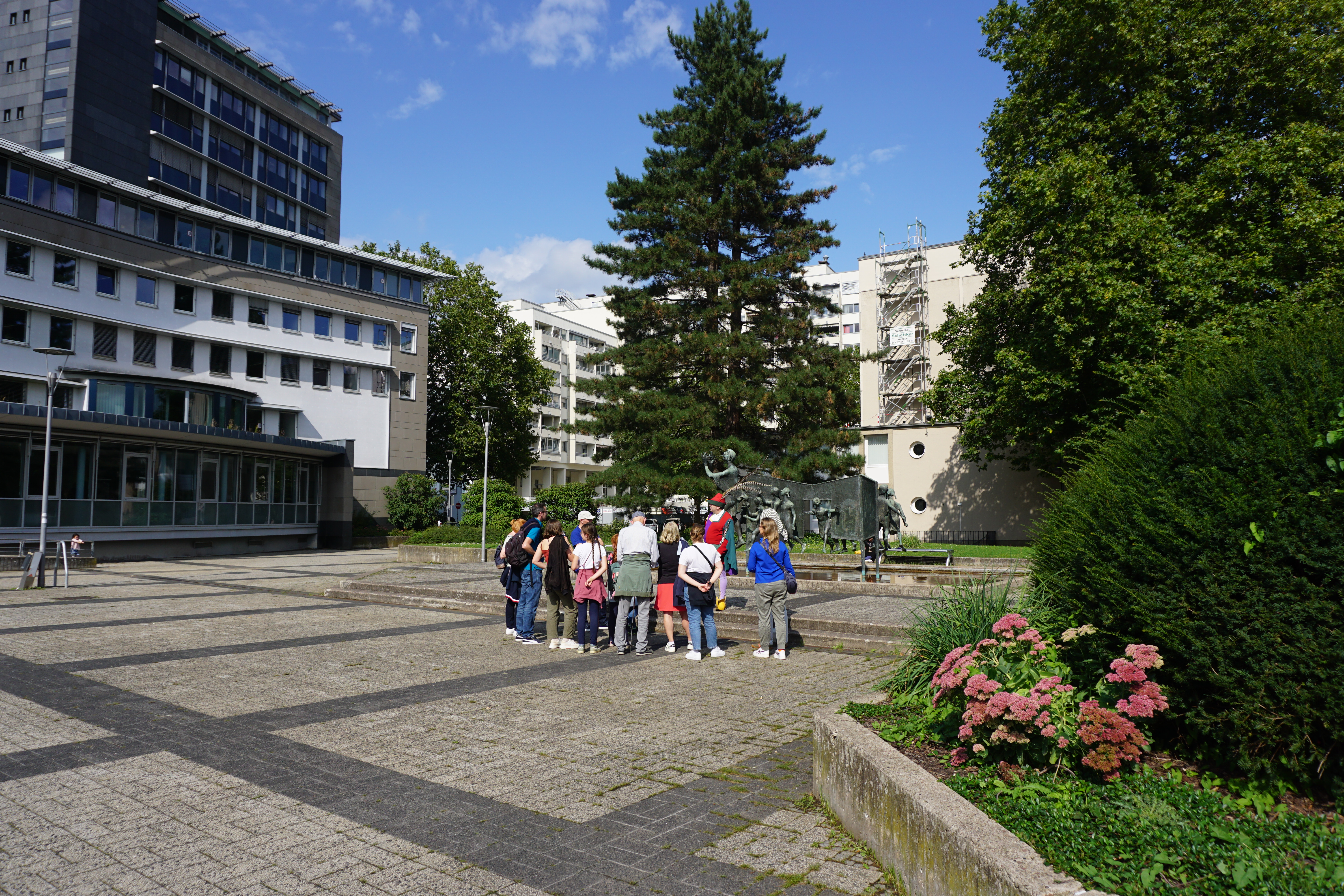 Hier am Rathausplatz und dem alten Rattenfängerbrunnen.