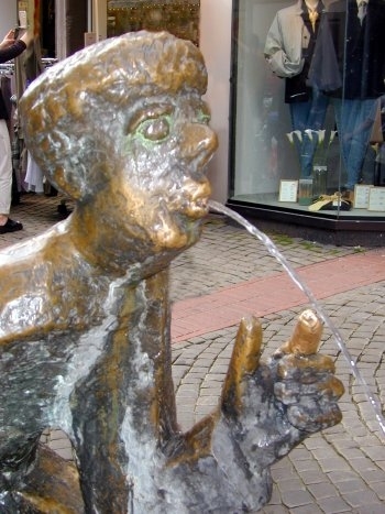 Die Skulptur des Weserspuckers steht in der Bäckerstraße in der Mindener Innenstadt.