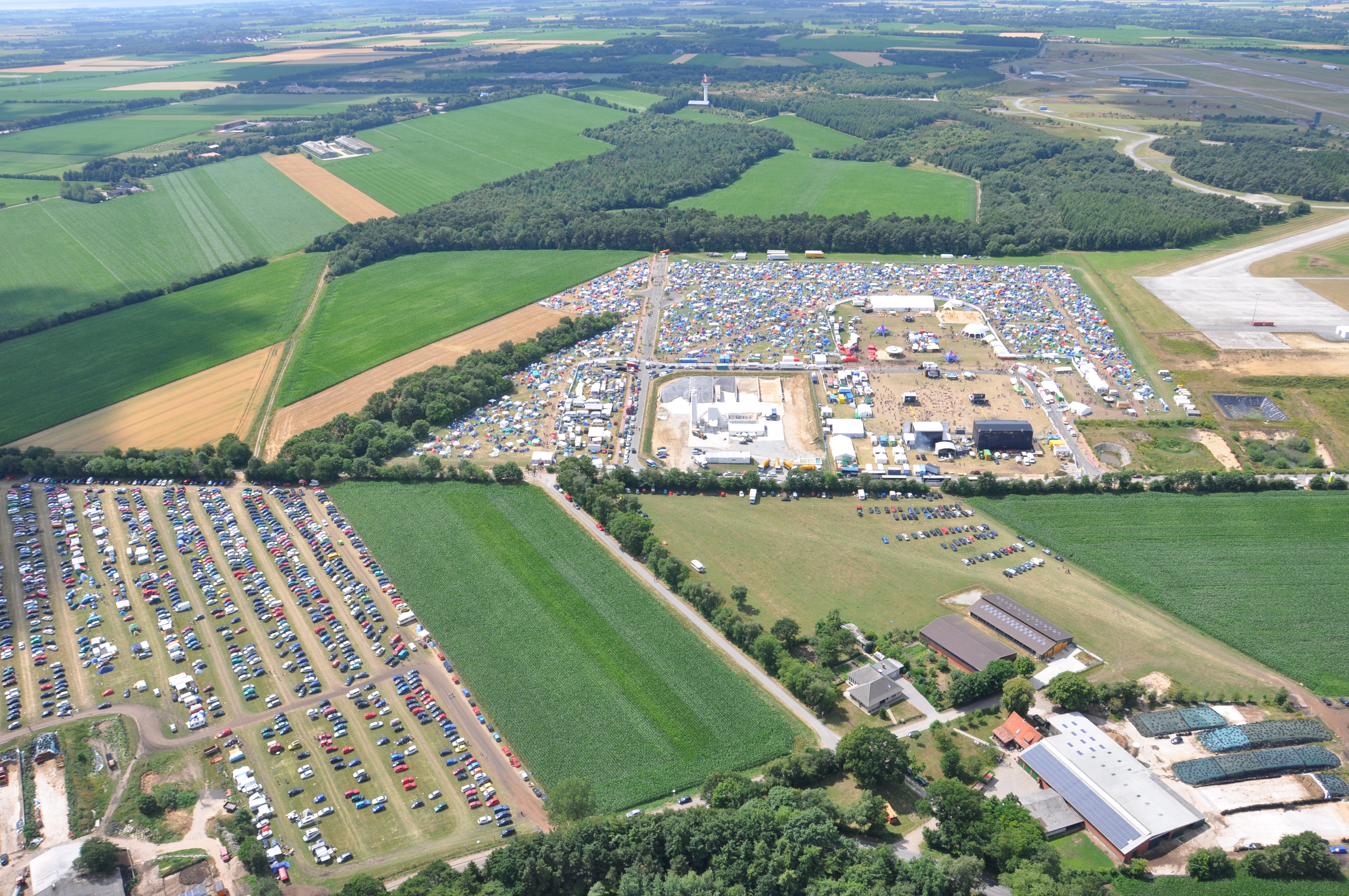 Luftaufnahme vom Deichbrand Rockfestival am Meer in Cuxhaven.