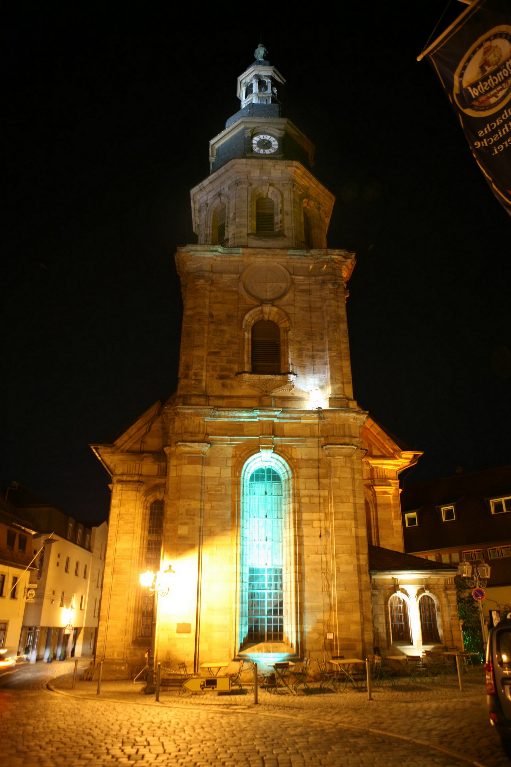 Die Kulmbacher Spitalkirche in der Lichtinszenierung.