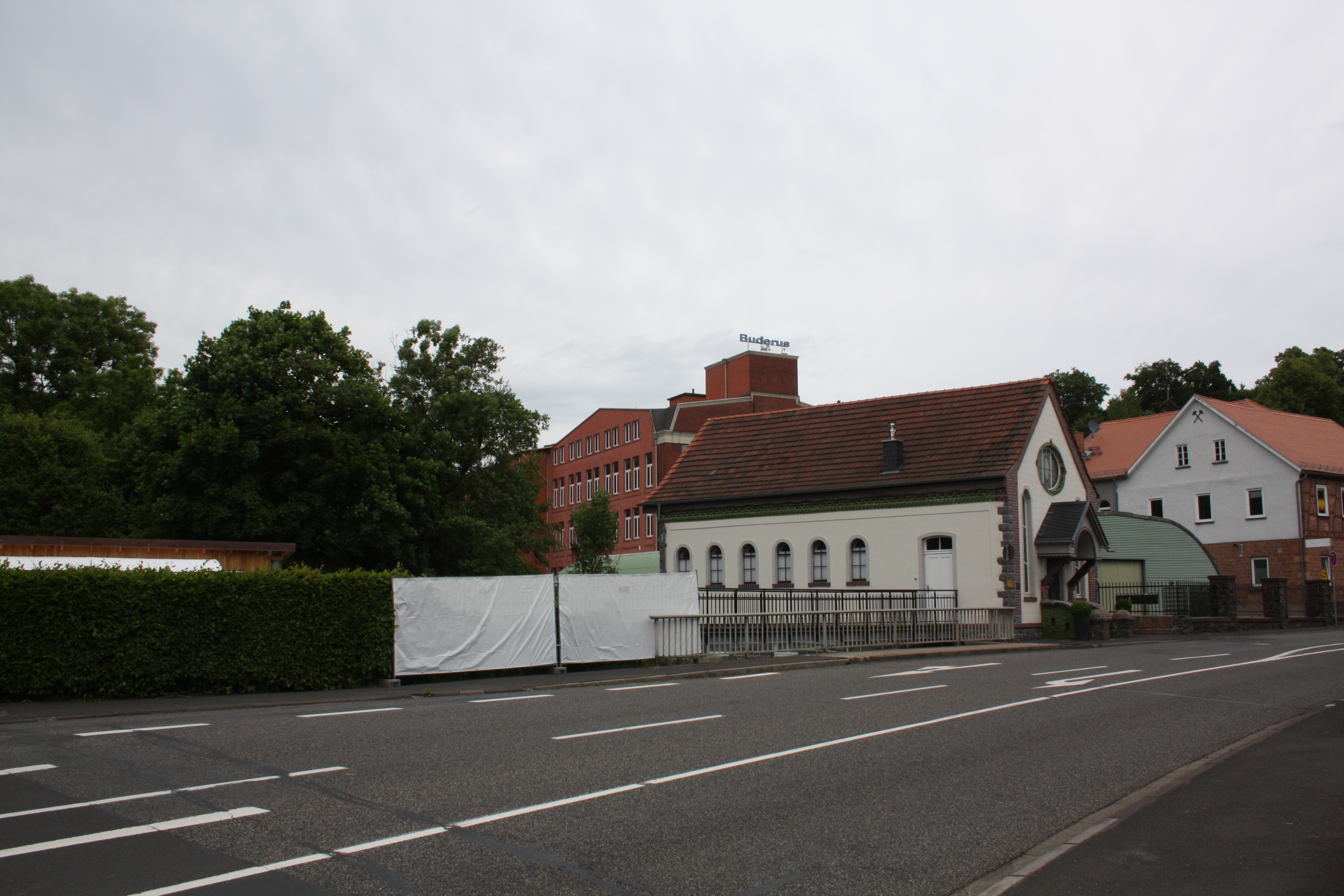 Das Badehaus in Hirzenhain und die Buderus-Werke (im Hintergrund).