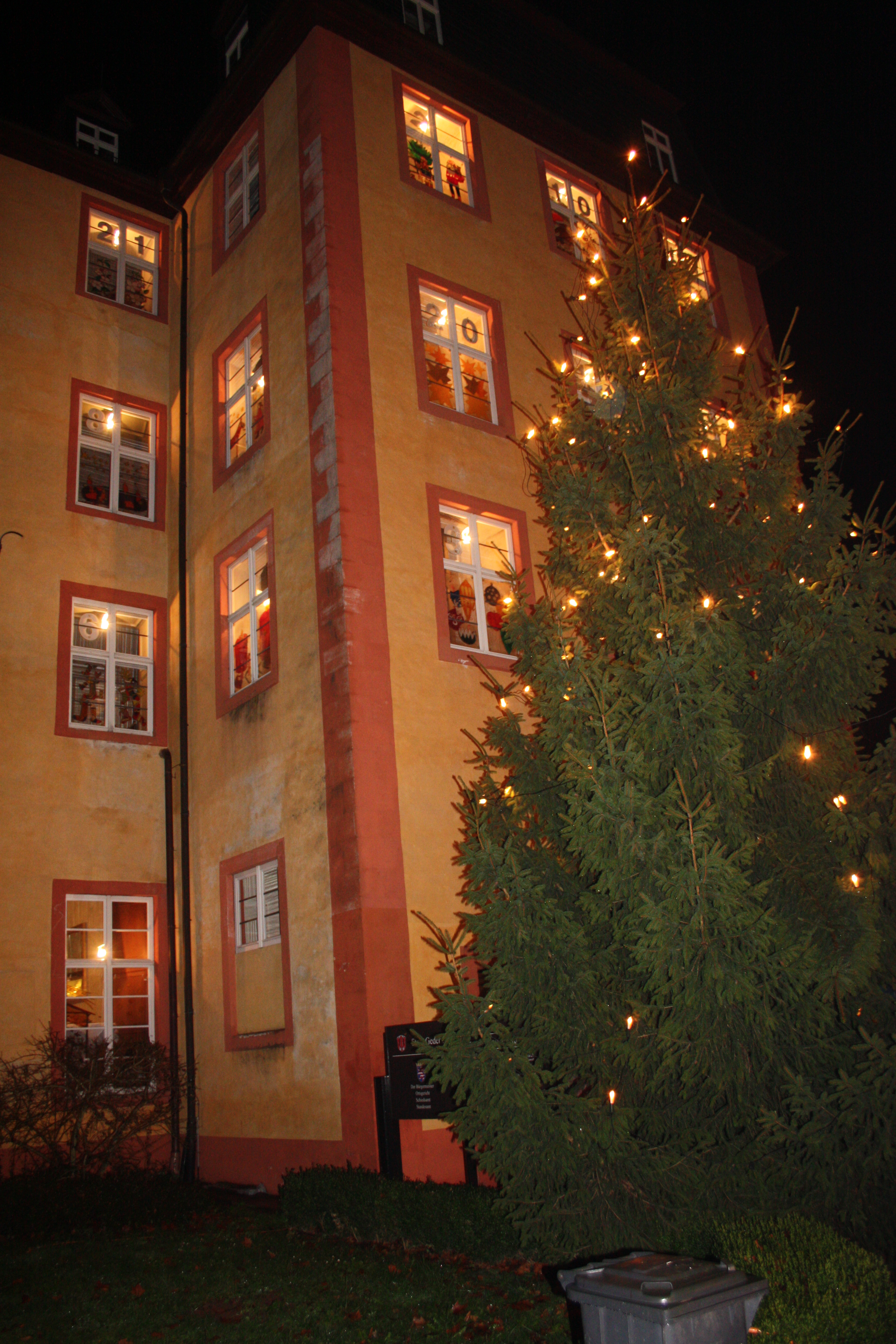 Der größte Adventskalender von Gedern befindet sich im Rathaus. Hier werden die Fenster in der Front als Adventstürchen geschmückt und ausgewählt.