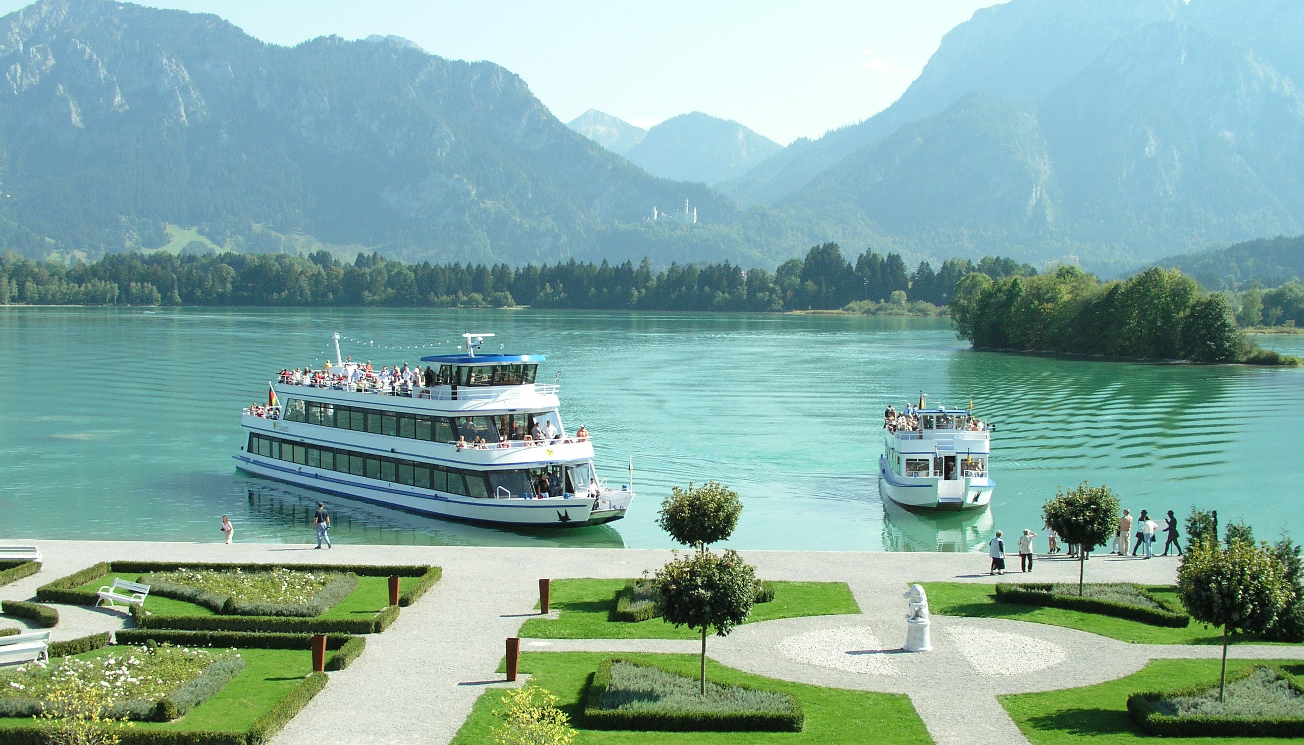 Die Fahrgastschiffe MS „Allgäu“ und MS „Füssen“ starten neunmal täglich ab dem Bootshafen Füssen.