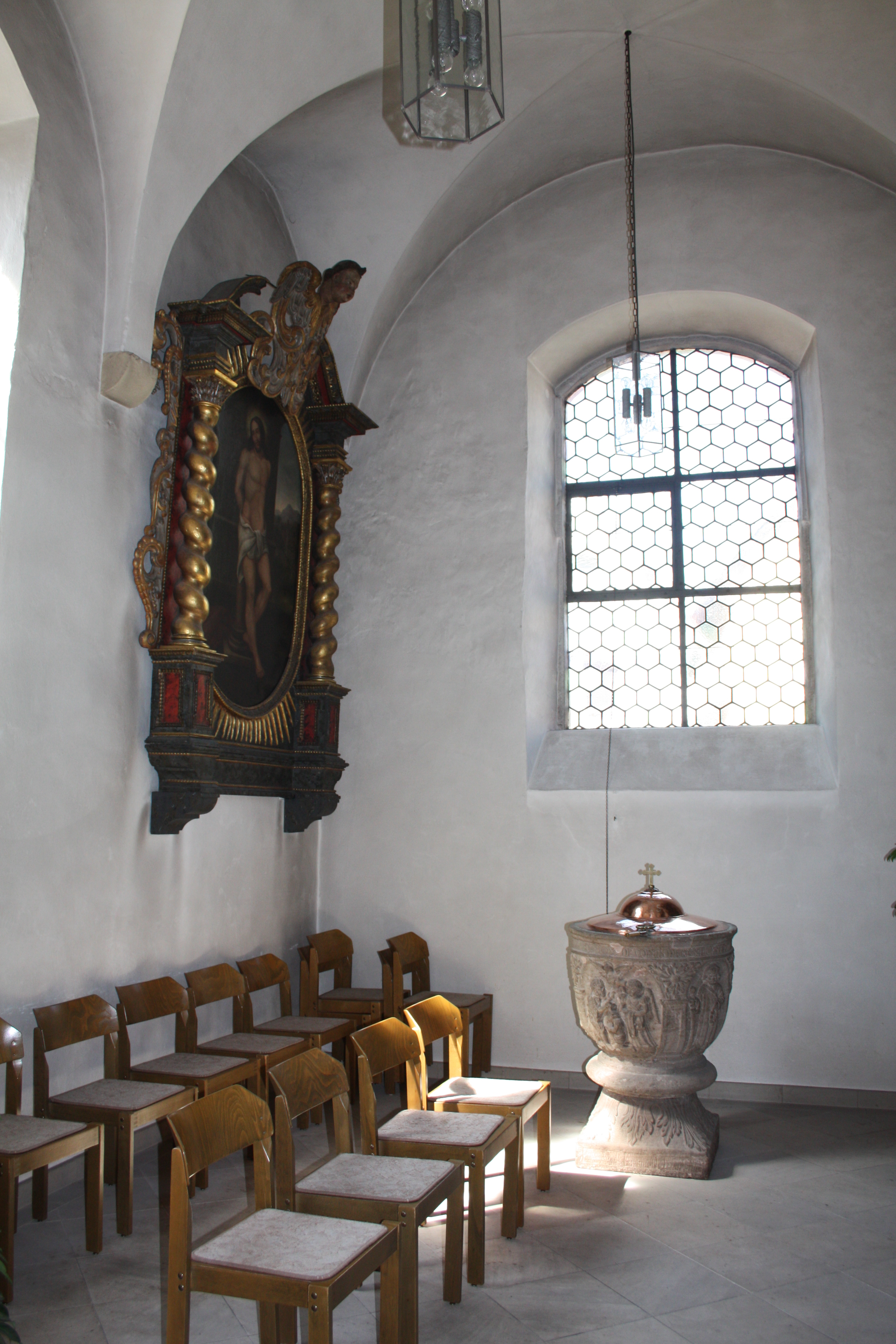 Der schöne Taufstein der spätgotischen Kirche St. Jakobus stammt aus der späten Renaissance (von 1580).