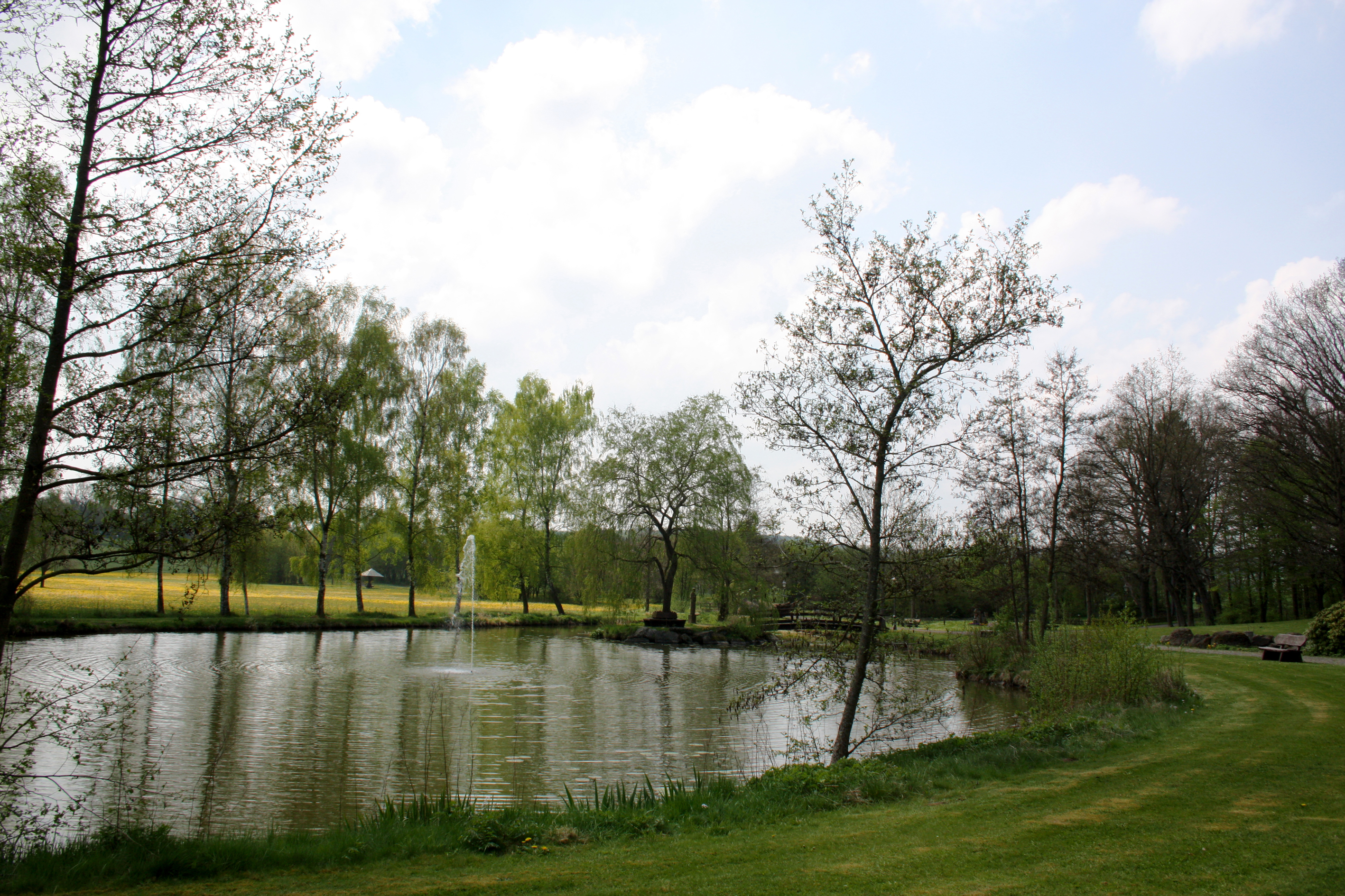 Der großzügige Park rund um die Therme lädt zum Spazieren ein.