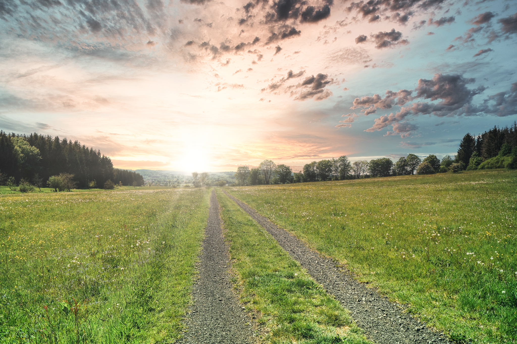Sonnenuntergang über den Wiesen, Altenschlirf (Stadt Herbstein).