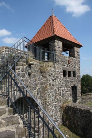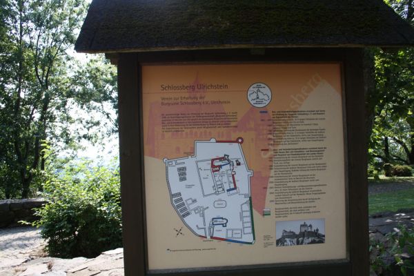 Über 600 m hoch auf dem Basaltkegel, wobei die Anhöhe Schlossberg genannt wird, liegt die Ruine Ulrichstein. Im Kern besteht die Ruine aus dem 12. Jahrhundert, als den Herren von Büdingen wohl noch das gesamte Gebiet zugehörte. Die Burg kam 1337 in die Hand der Herren von Eisenbach, die das Gebäude erweiterten und am 23.03.1347 der Stadt unter der Veste alle Freiheiten und Rechte zugestanden. Während der Befreiungskriege soll Blücher hier Station gemacht haben. 1826 wurde die Burg abgebrochen, daher künden nurnoch Ruinenteile, wie der Schlossbergturm, von dem einstigen wehrhaften Verwaltungssitz.