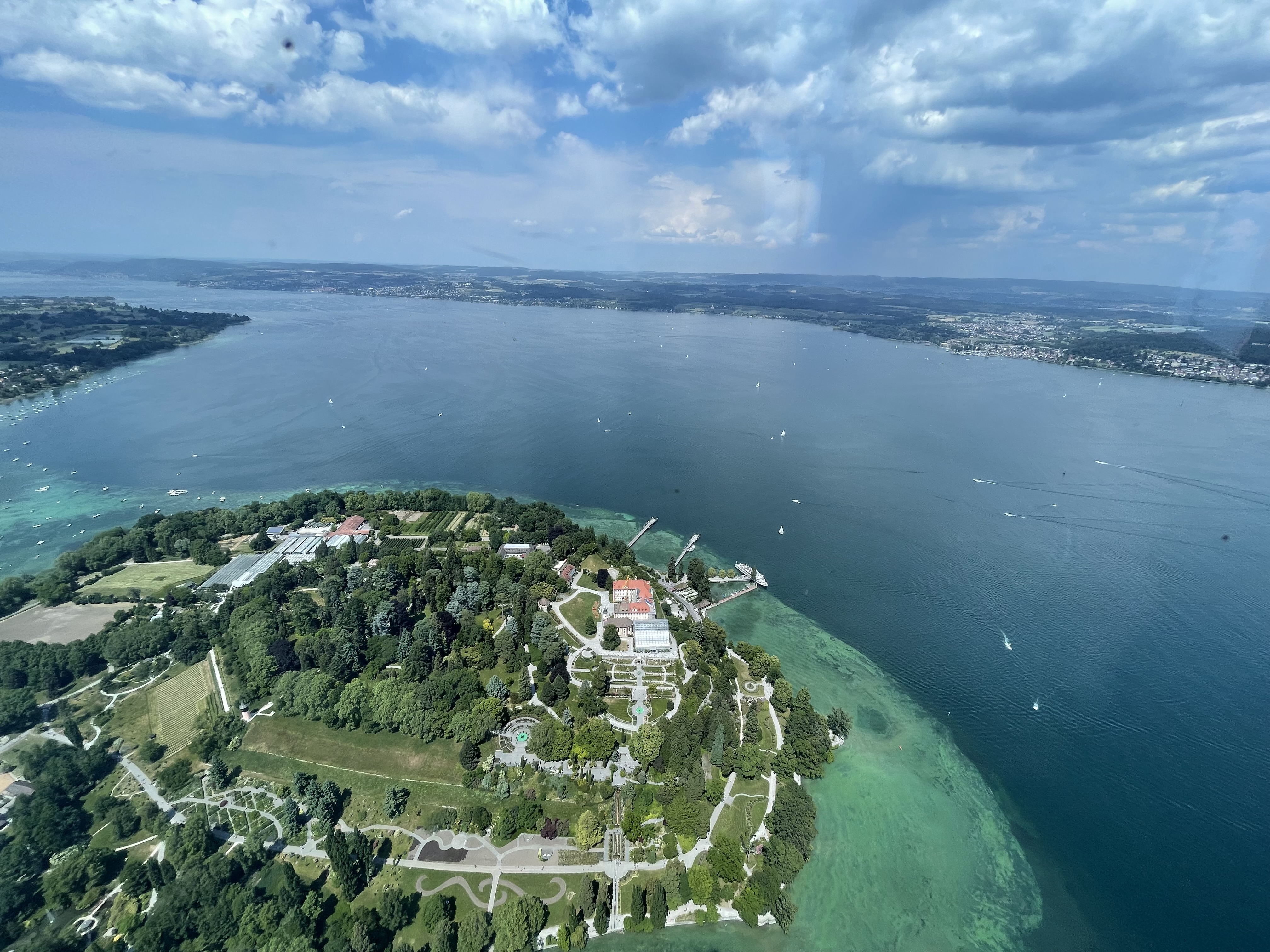 Luftaufnahme aus dem Helikoper von der Insel Mainau.