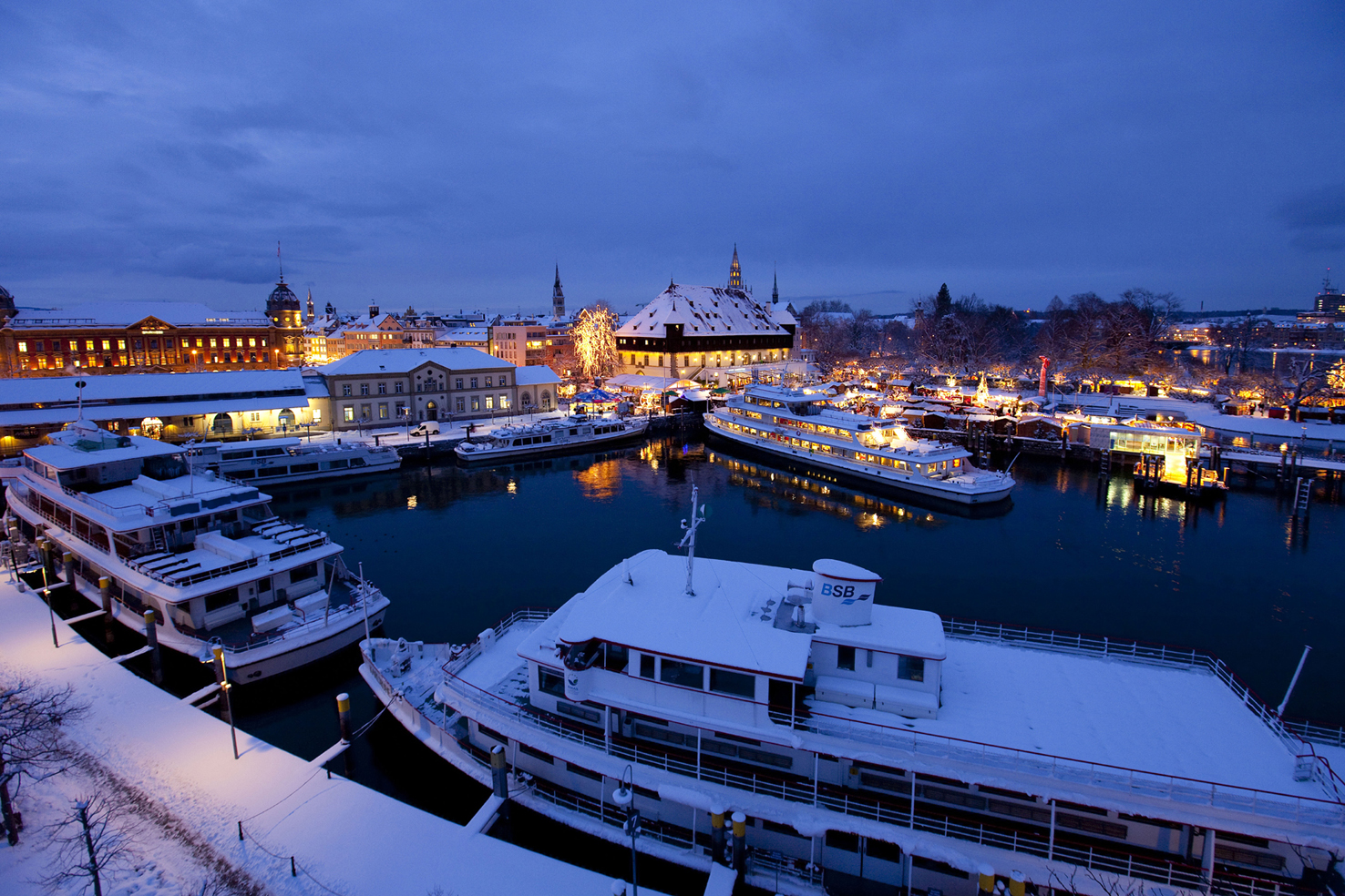 Die Bodenseeschifffahrt bietet auch winterliche und weihnachtliche Sonderfahrten an. Sogar Silvester-Kreuzfahrten werden angeboten.