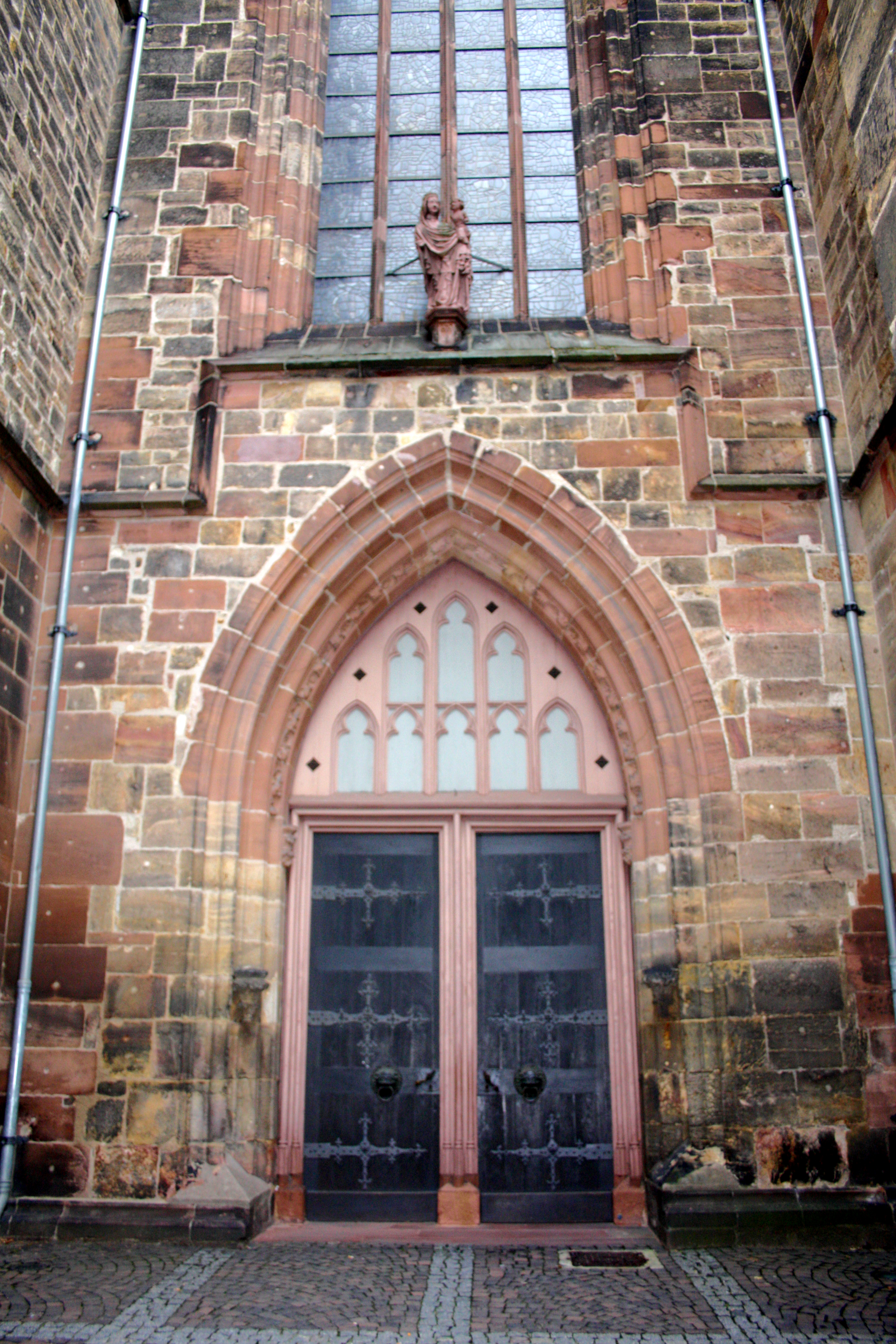 Eingangsportal der evangelischen Stadtkirche "Unserer Lieben Frau".