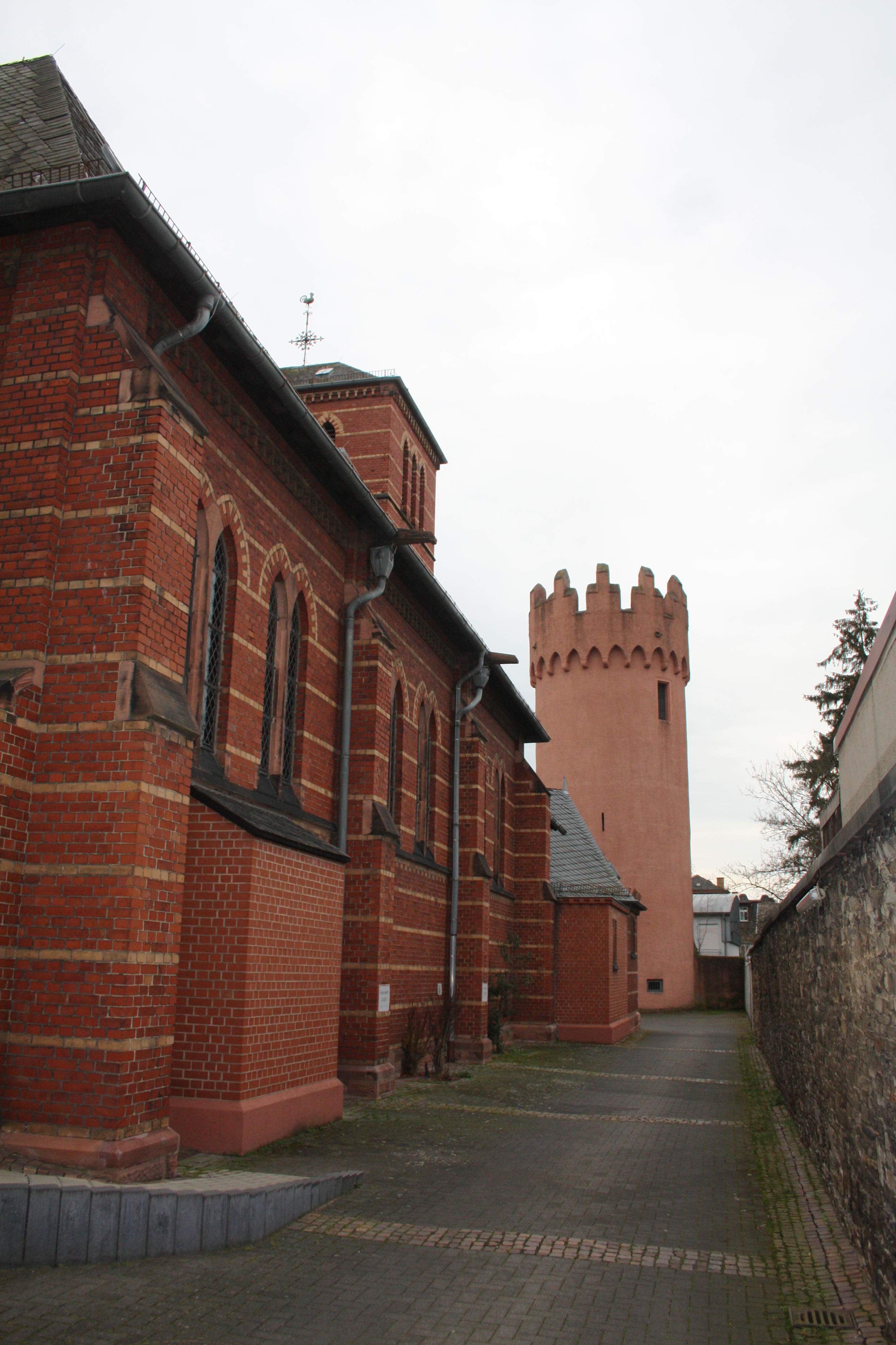 Die Katholische Pfarrkirche Mariä Himmelfahrt und der Rote Turm.