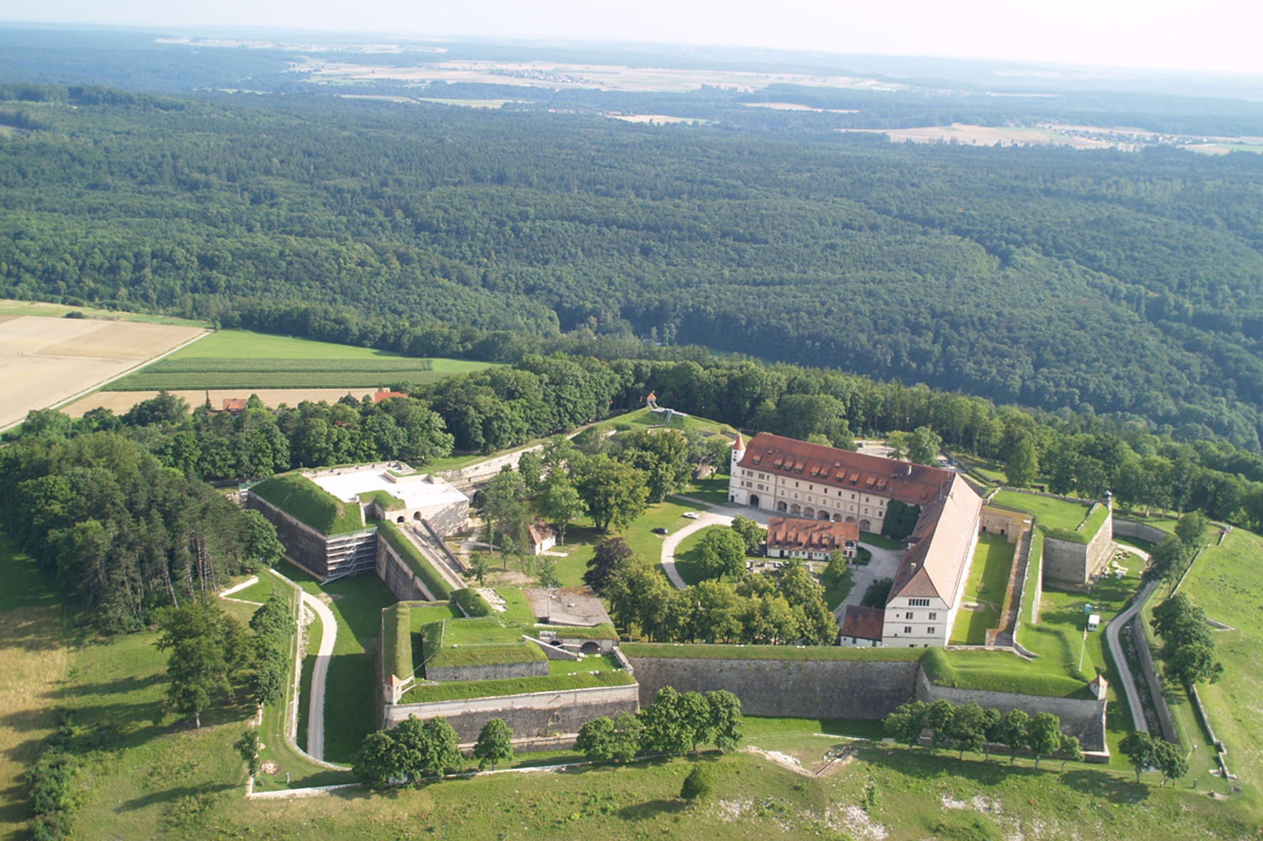 Die Festung liegt auf der höchsten Bergkuppe (630m) der südlichen Frankenalb.
