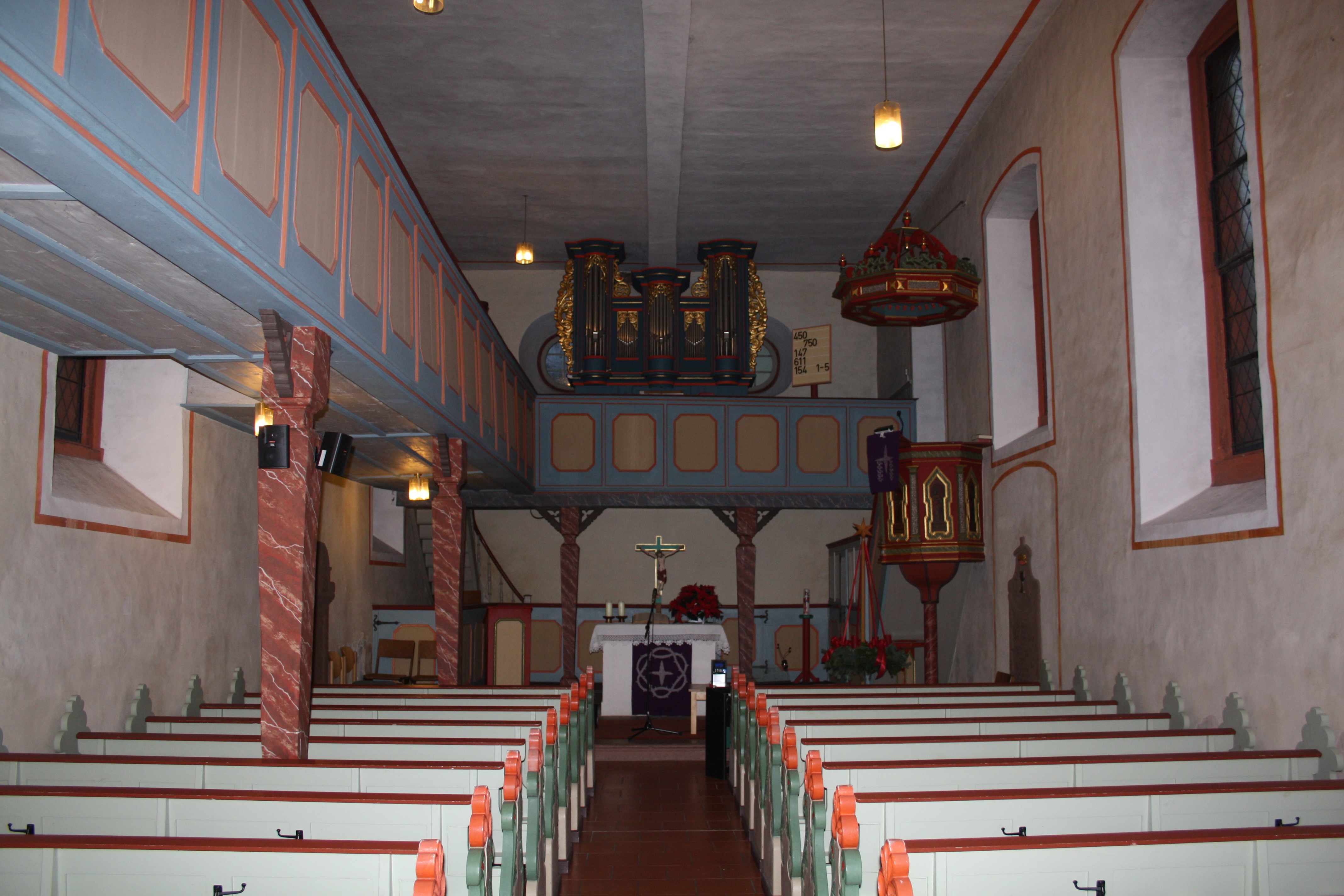 Die evangelische Kirche von Ranstadt wurde um 1735 erbaut, so auch der Chor im Altarbereich und die Kanzel.