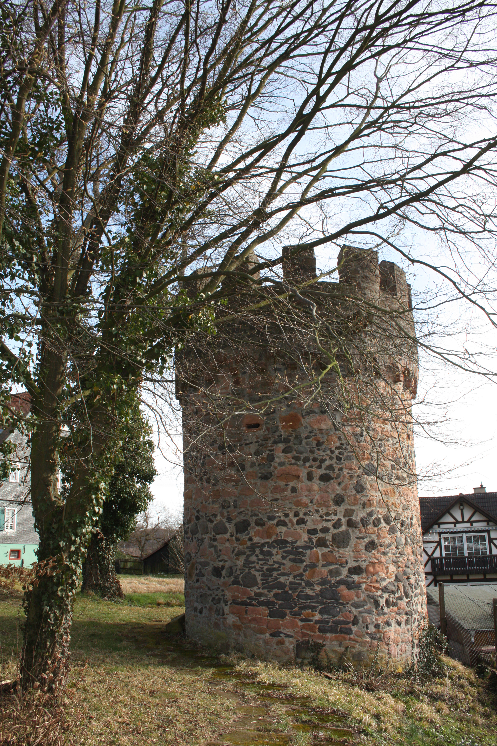 Im Ortsteil Dauernheim, direkt hinter dem Pfarrhaus, liegt der Wehrturm als Rest der ehemaligen Befestigung aus dem 13. Jahrhundert.