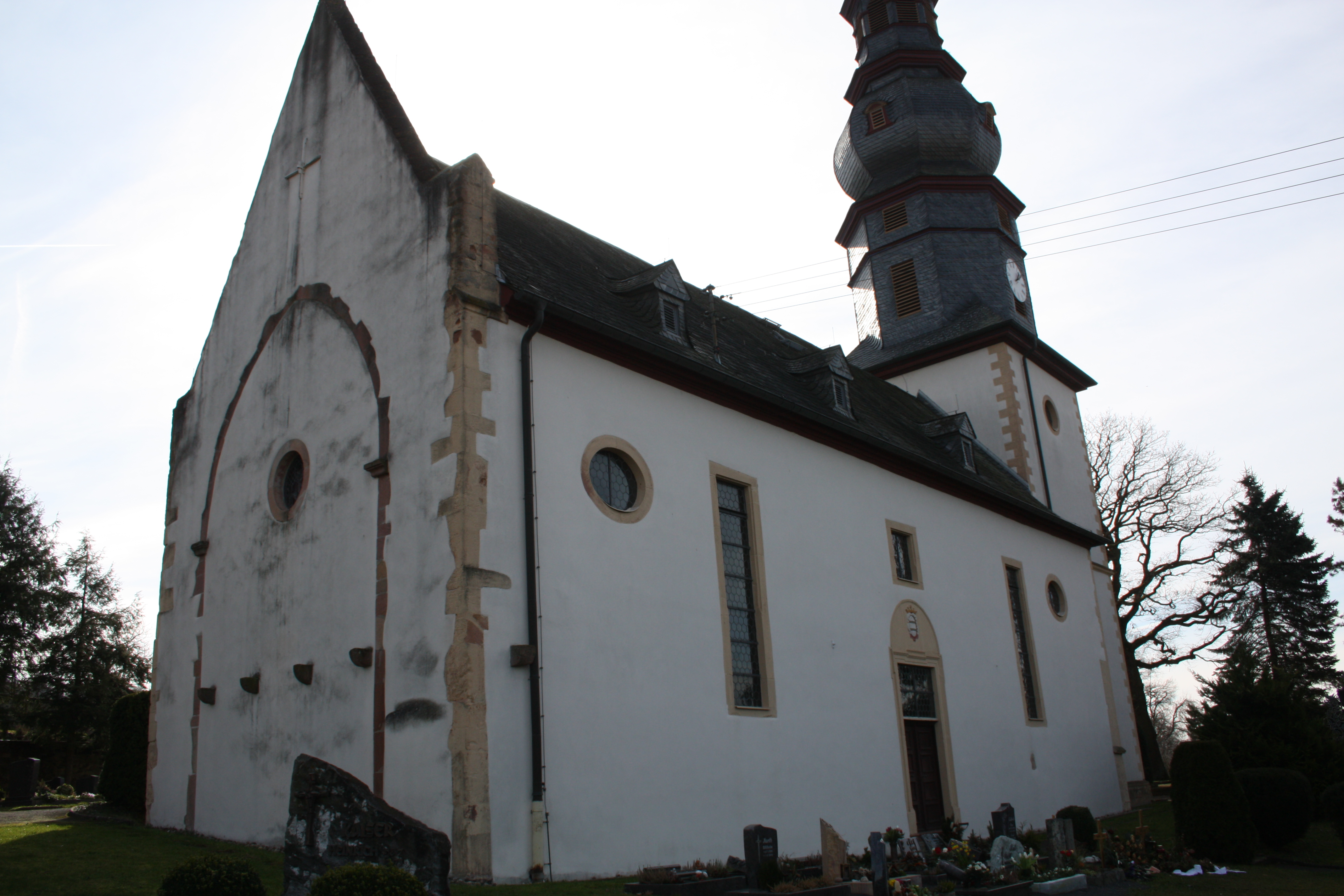 Die heute evangelische Kirche liegt leicht über dem Ortsteil Ober-Mockstadt. Sie wurde bereits um 1220 als gotische Kirche errichtet.