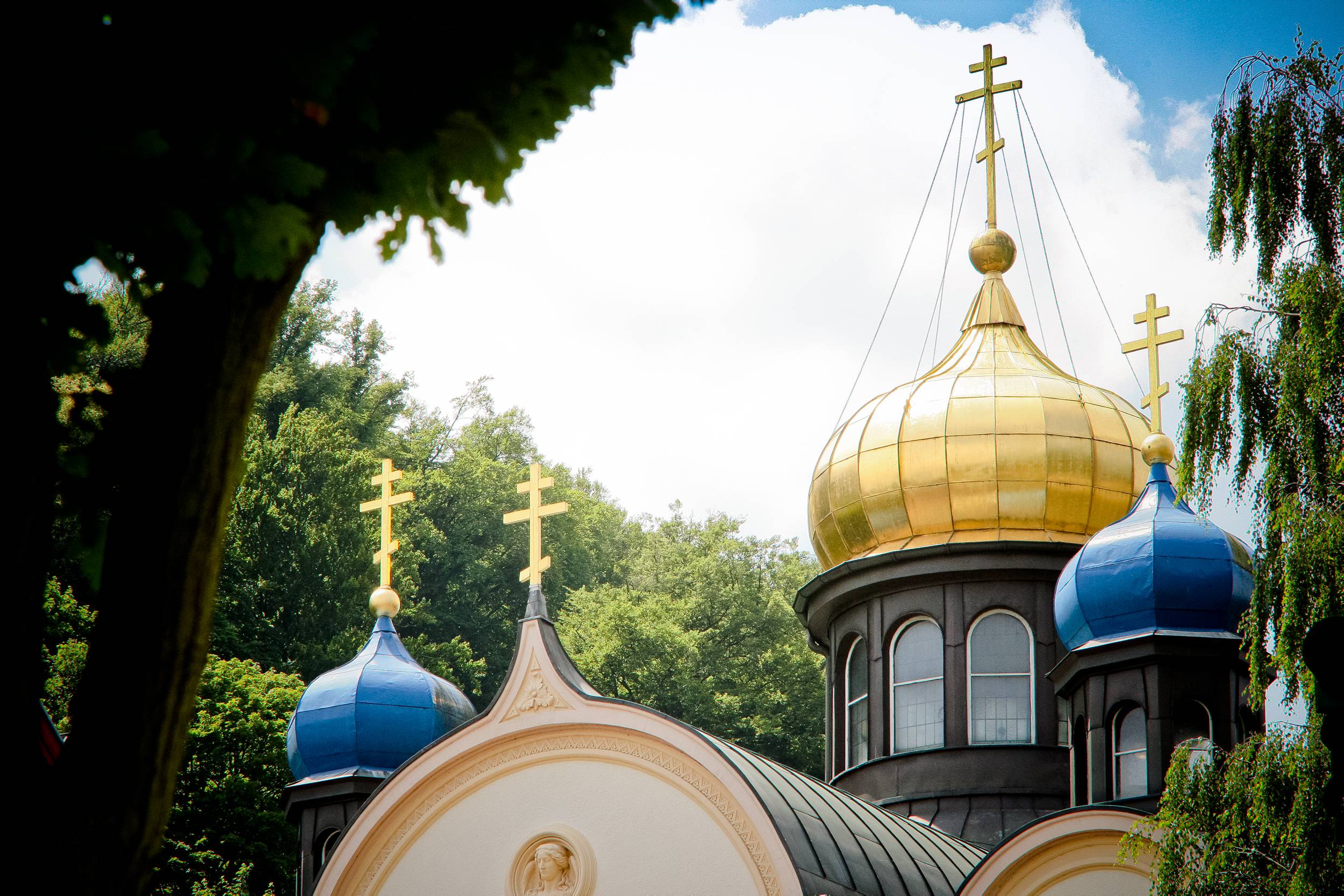 Die russisch orthodoxe Kirche wurde auf einem kreuzförmigen Fundament mit fünf Kuppeln errichtet. Die Kuppeln bestehen aus vier blauen Kuppel, wobei die Farbe Blau die Weisheit Gottes symbolisiert, und die goldene Hauptkuppel als prachtvoller Höhenabschluß.