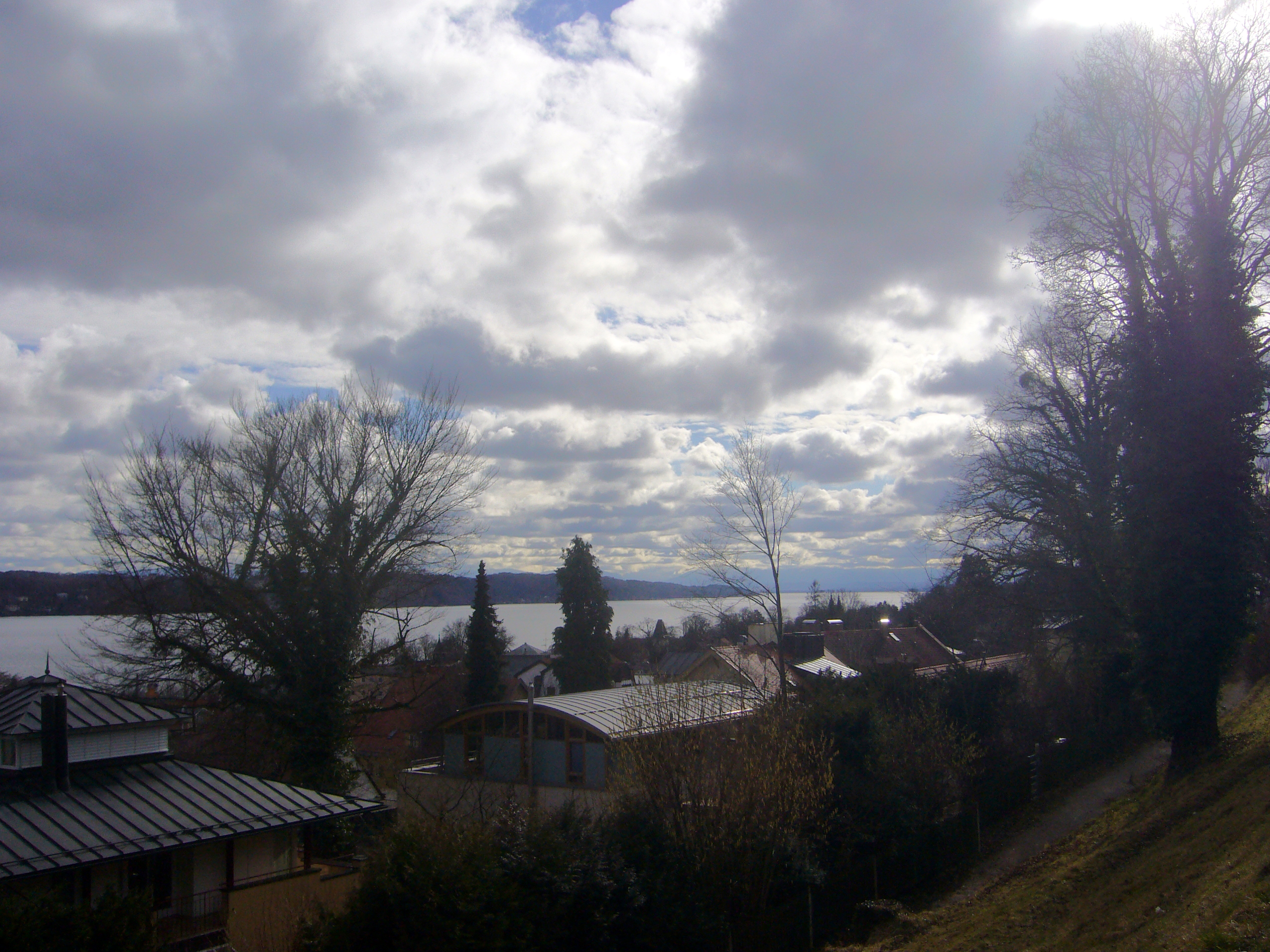 Blick vom Schlossberg über Teile Starnbergs und den Starnberger See.