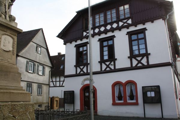 Das Spitzenhaus am Rathausvorplatz in Reichelsheim.
