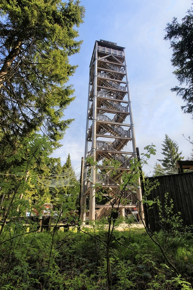 Der Aussichtsturm (35m) auf dem Haidelberg (1167 NN) bietet einen atemberaubenden Ausblick über den südlichen Bayerischen Wald bis hin zu den Alpen und zu den Bayer- und Böhmerwaldbergen.