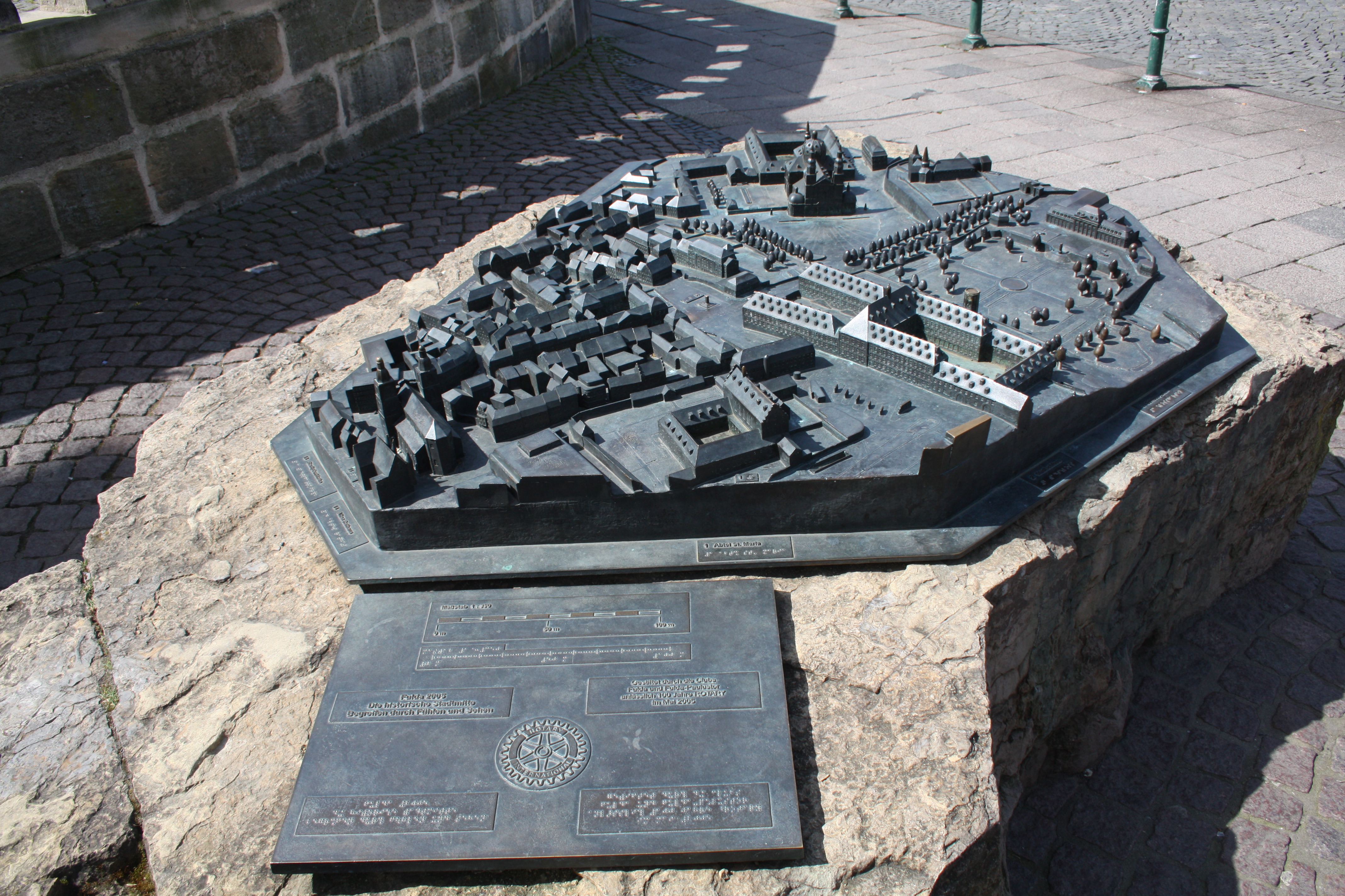 Die Altstadt von Fulda als Gussbild am Bonifatiusplatz.