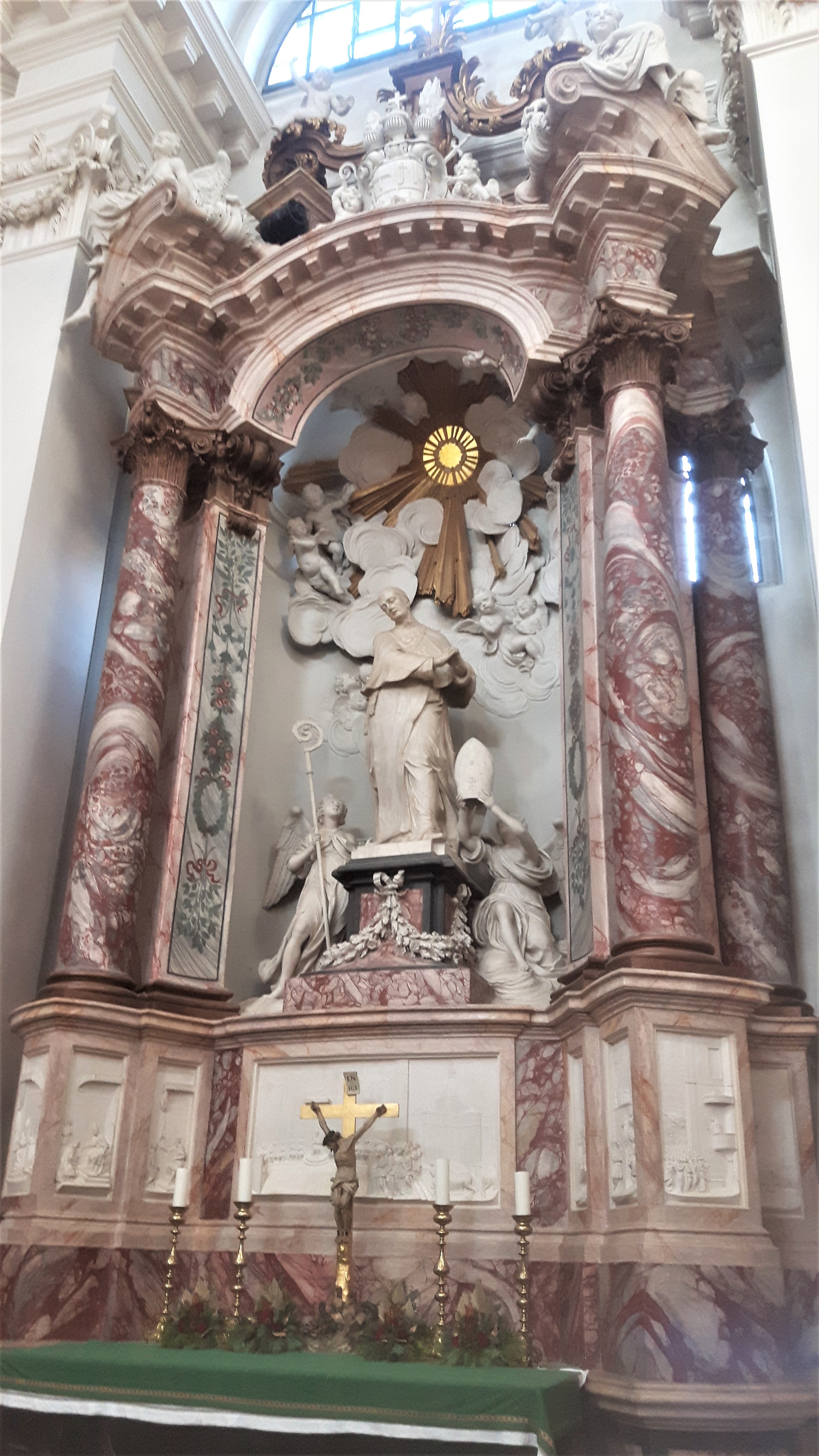 Hier der Seitenaltar aus Marmor. Er zeigt den hl. Sturmius.
