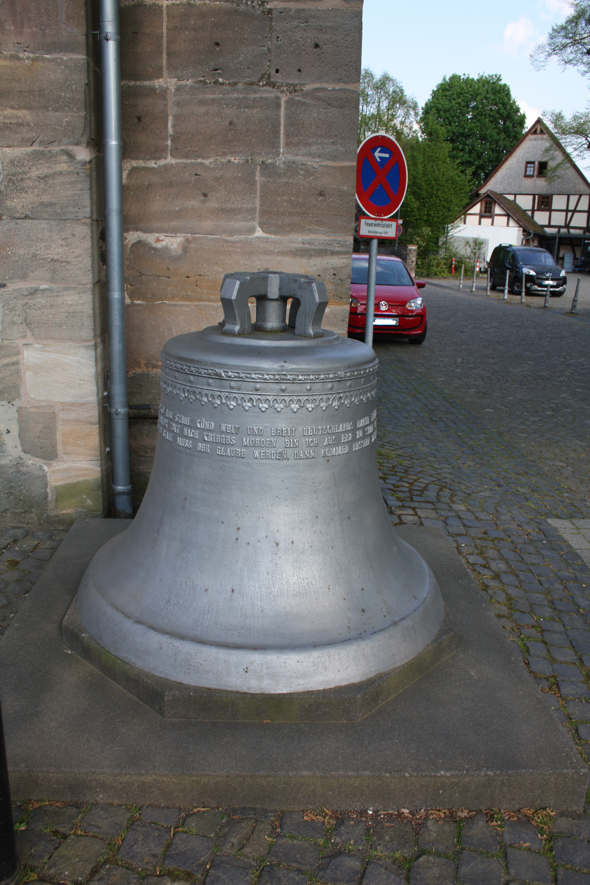 Die alte Glocke vom Glockenturm der Schlosskirche wurde Ende der 1960er Jahre ausgetauscht gegen zwei Bronze-Glocken, da der Ton wohl nicht ideal passt. Die ca. 1.3t schwere Glocke wurde zuvor als Ersatzglocke für die im 1. Weltkrieg abgegebenen Glocken angeschafft.