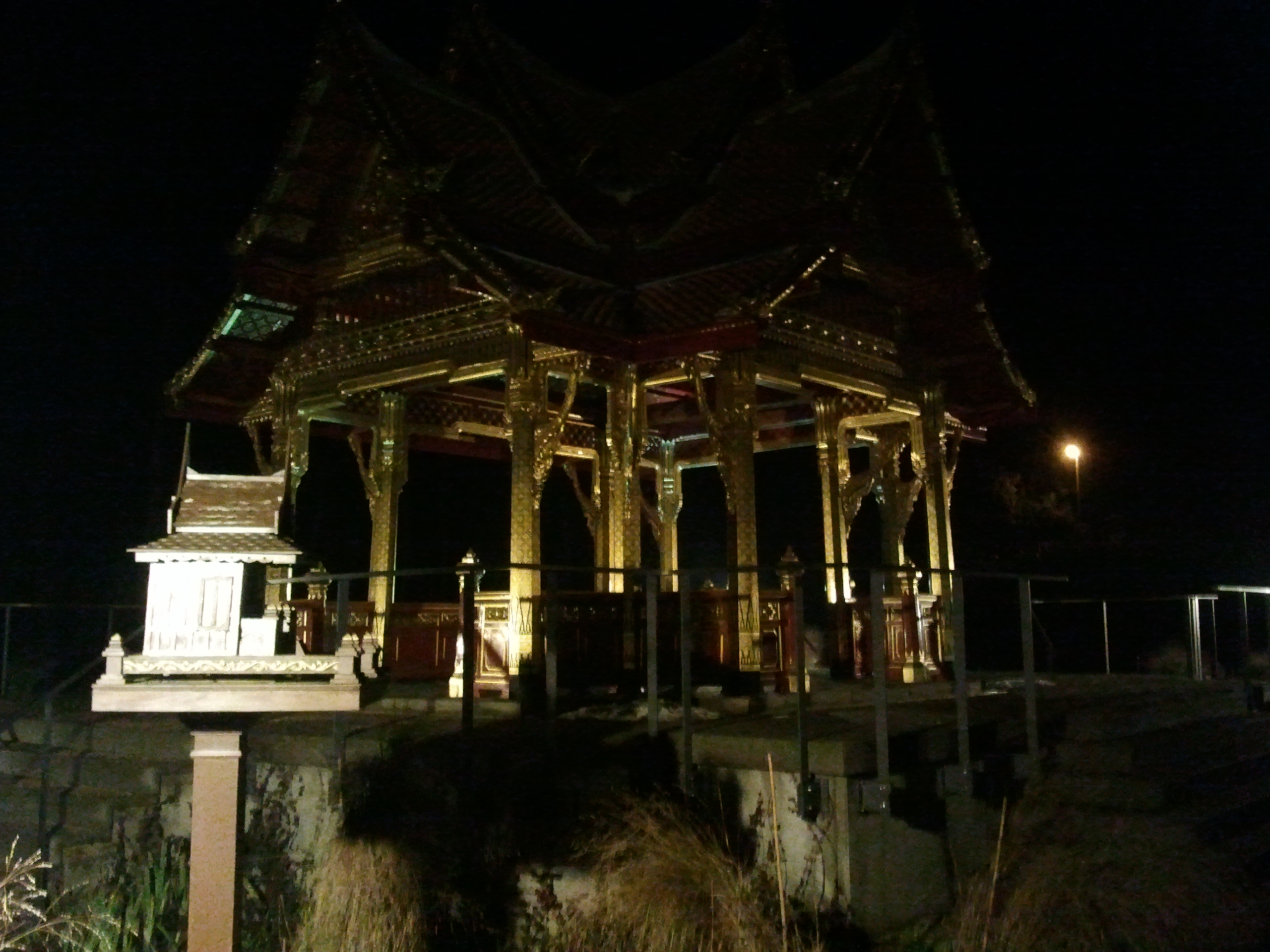 Sala Thai II Tempel im Kurpark Bad Homburg bei Nacht. < >