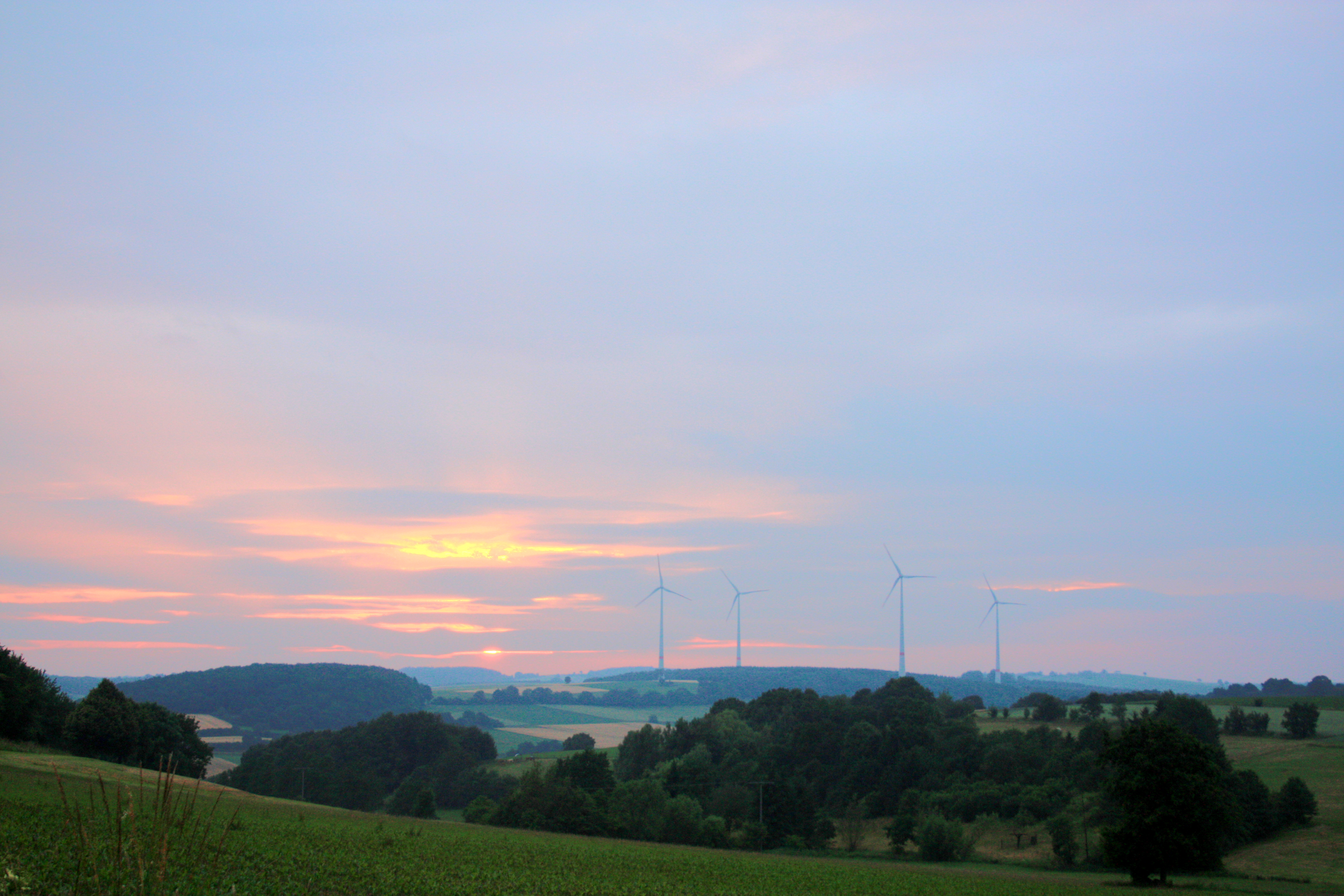 Landschaft um Kefenrod bei Sonnenuntergang.