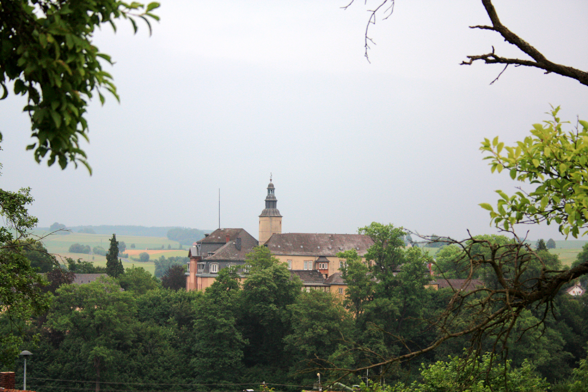 Birstein mit seinem märchenhaften Schloss auf einer Anhöhe.