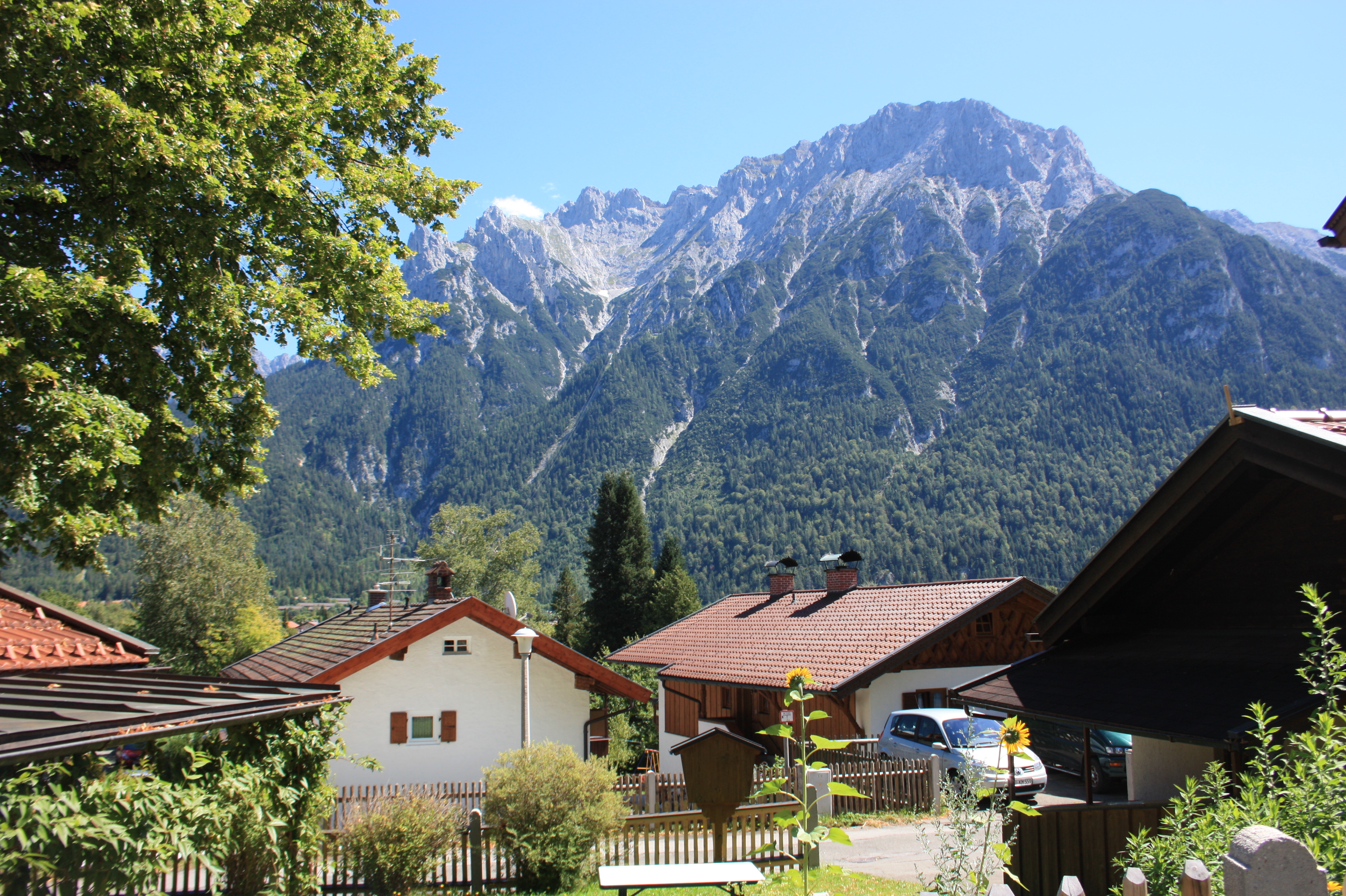 Blick auf die Westliche Karwendelspitze von Mittenwald aus.