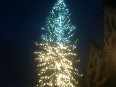 Der Weihnachtsbaum des Frankfurter Weihnachtsmarkts auf dem Römerplatz.