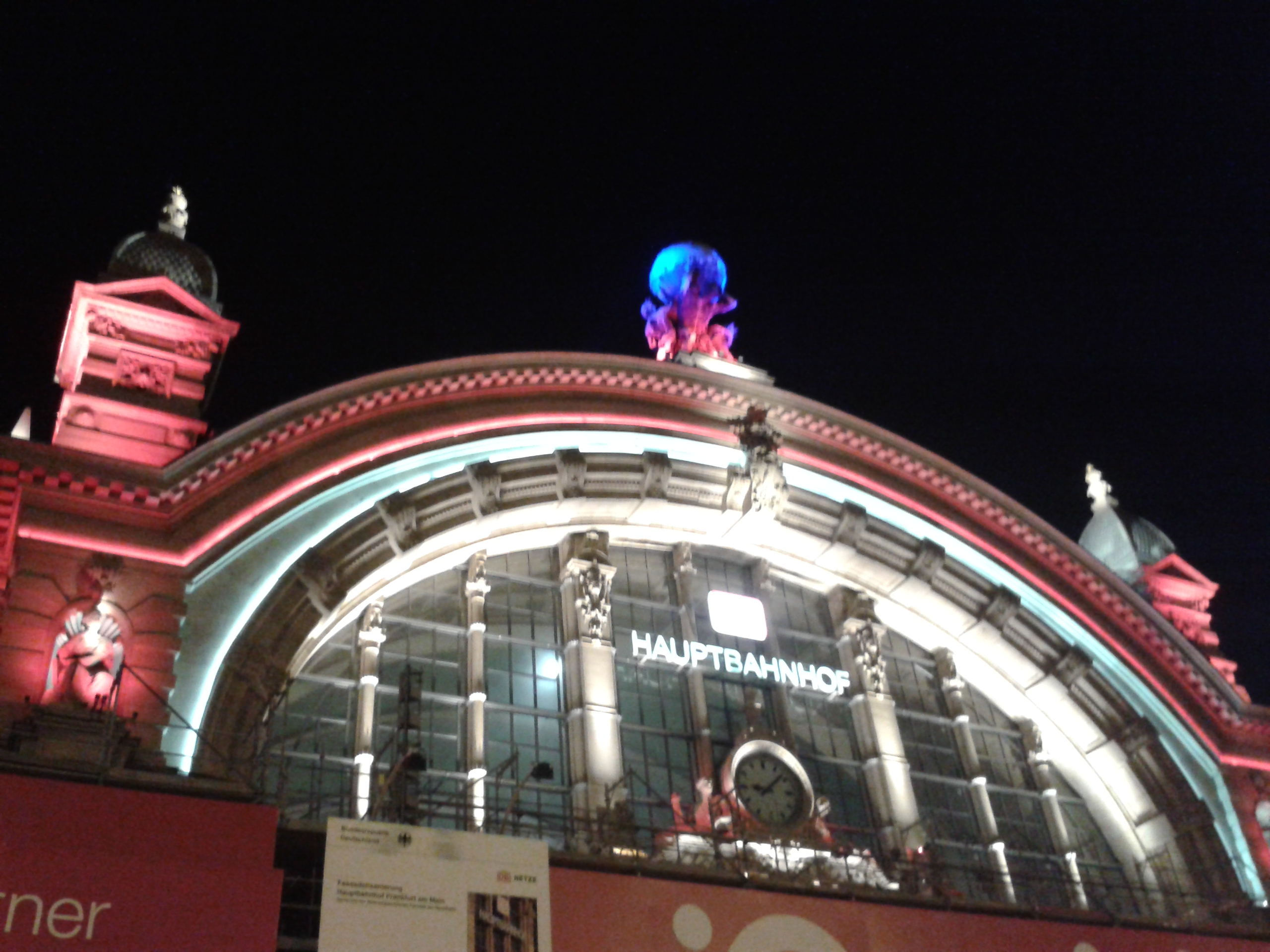 Zum Beginn der „Luminale 2014“ in Frankfurt am Main hat die Deutsche Bahn eine Lichtinstallation am Hauptportal des Hauptbahnhofes in Betrieb genommen.
