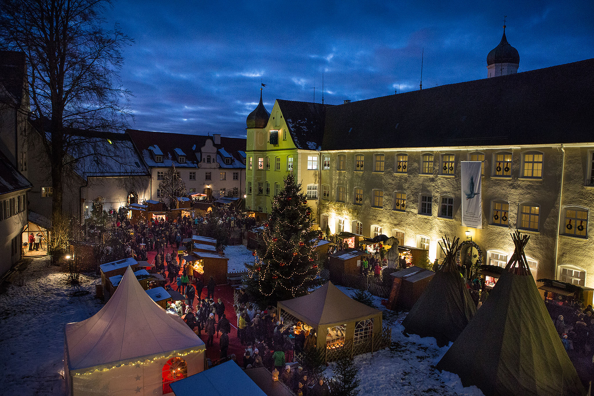 Der Innenhof der ehemaligen Klosteranlage bildet den festlichen Rahmen für einen besonders stimmungsvollen Weihnachtsmarkt.