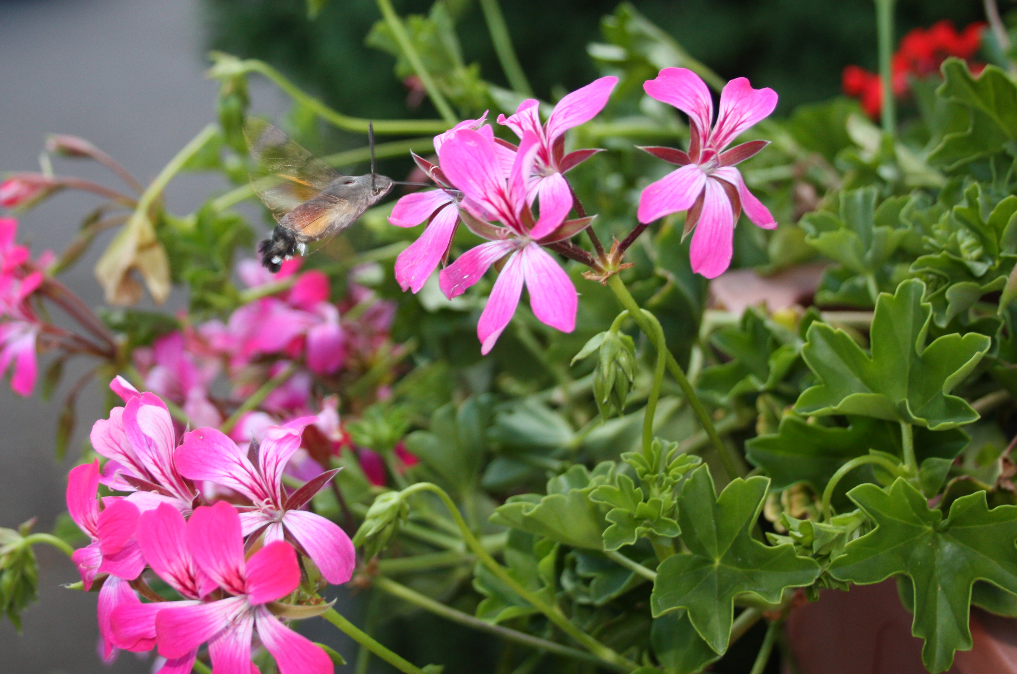 Hier einige Bilder des Taubenschwänzchen, welches Geranien liebt. Aufnahme in Ortenberg aufgenommen.