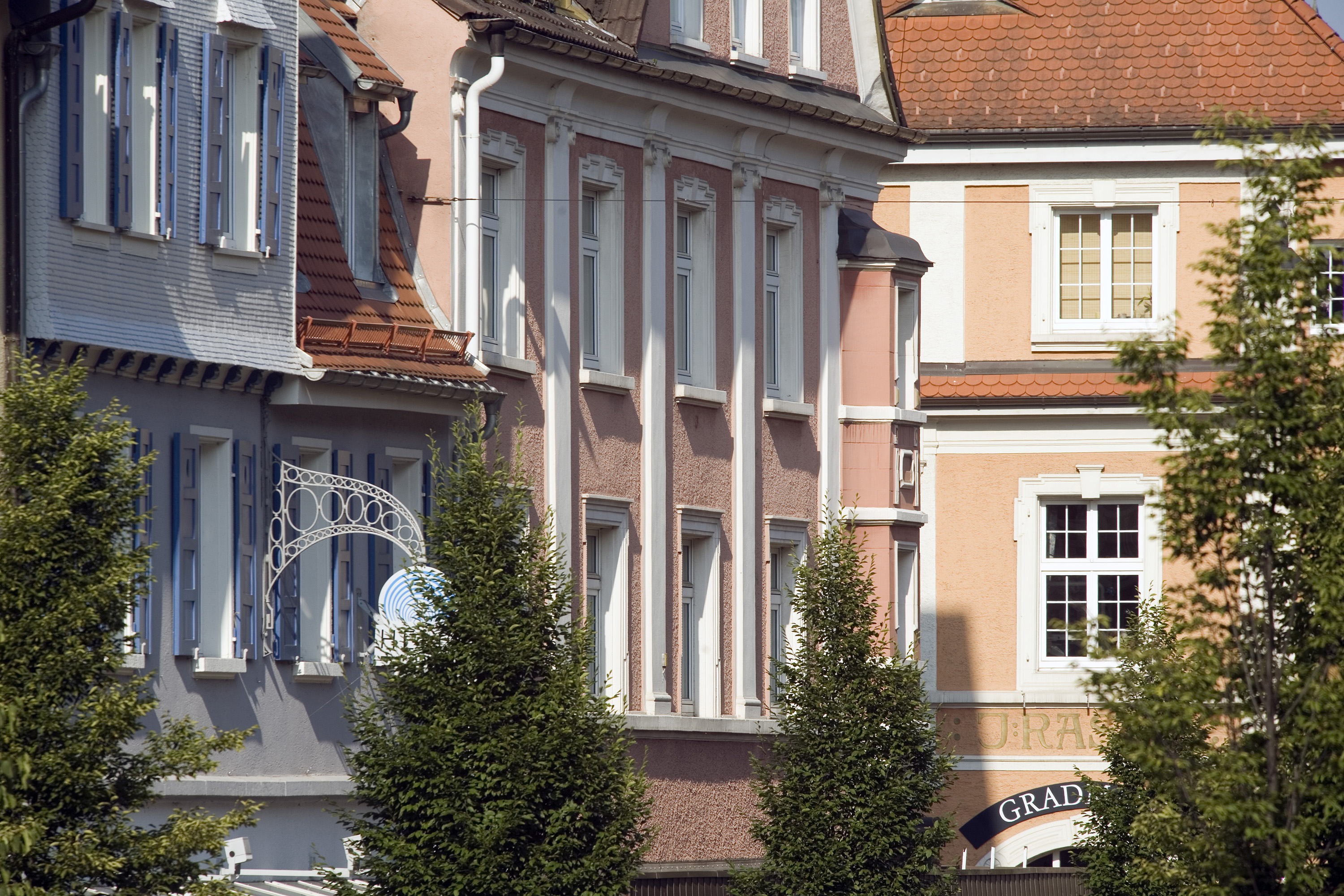 Nach dem großen Brand von 1908 wurde das Stadtzentrum mit stadtplanerischer Weltsicht wieder aufgebaut. Seither befinden sich an den Hausfassaden in der Donaueschinger Karlstraße Elemente des Jugendstils und des Historismus.