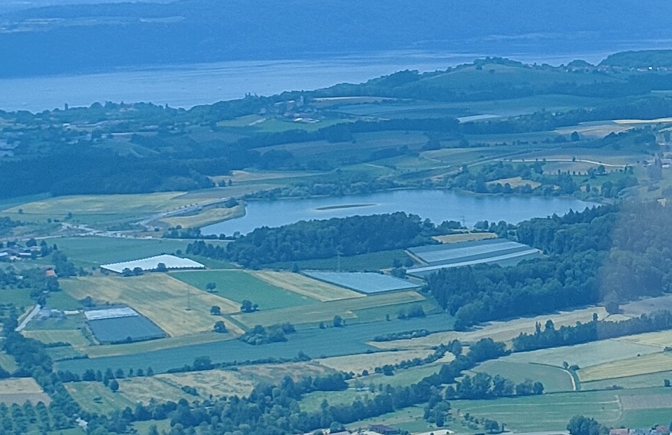 Der Andelshofer Weiher (Neuweiher) und Überlingen aus der Luft.